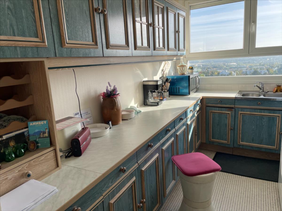 Agréable appartement de 3pps en étage élevé avec un séjour 18 m² avec vue imprenable dégagée, cuisine indépendante très lumineuse, deux chambres et salle de bains, wc indépendant.Logement très soigné, huisseries PVC avec volets roulants electriques.vendu avec une cave