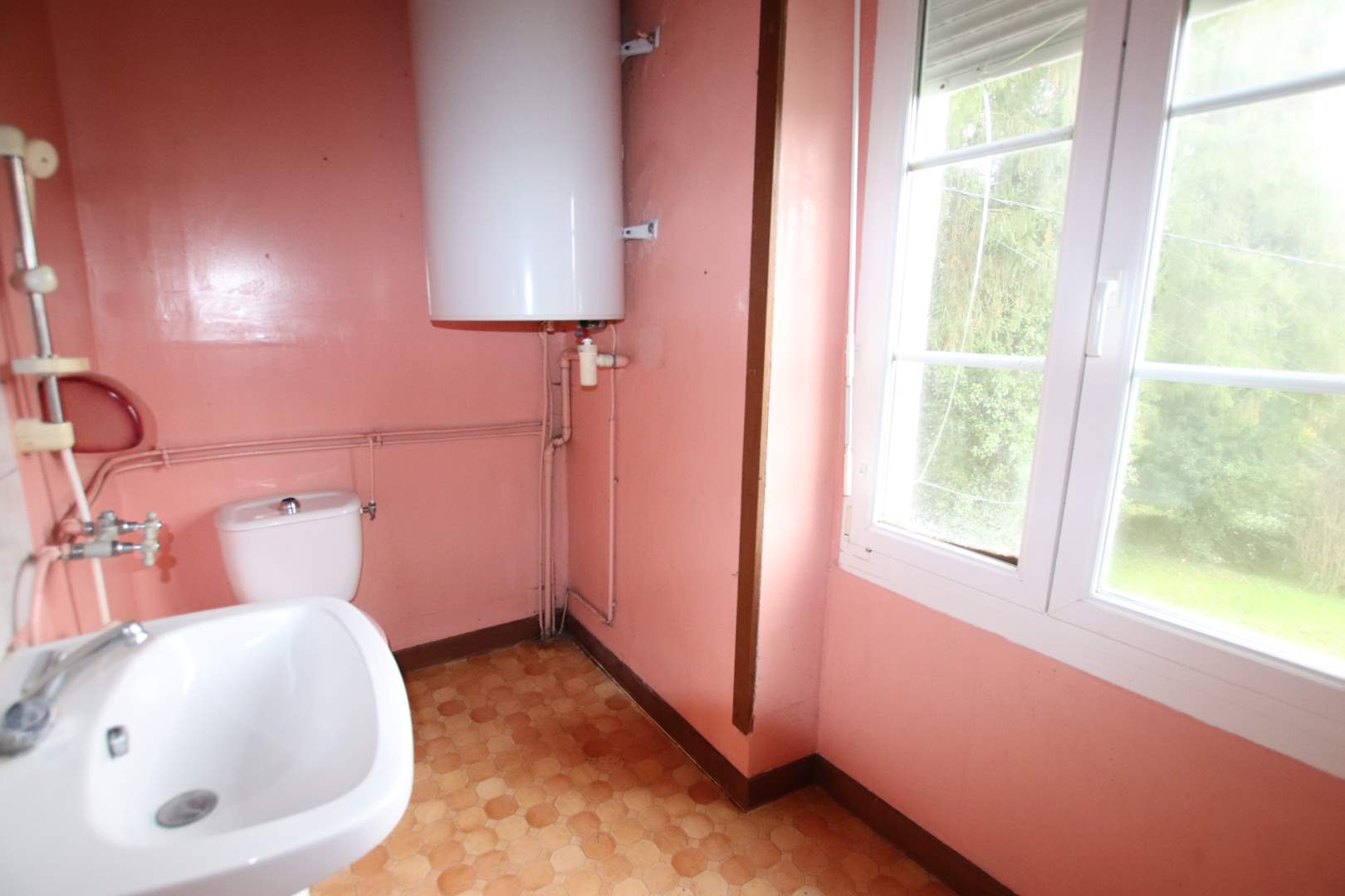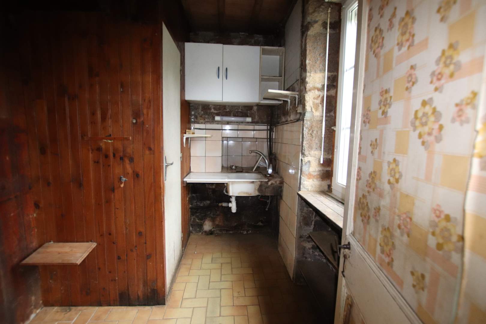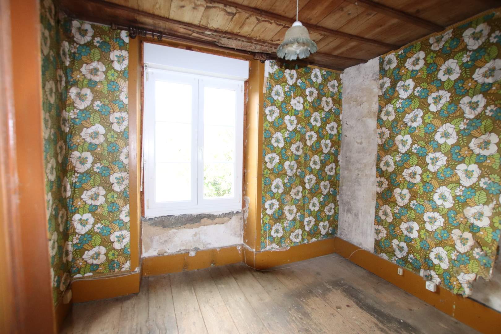 Maison en pierre à restaurer, composée au rez-de-chaussée : une grande pièce principale, une pièce plus petite, coin cuisine, WC, à l'étage, cabinet de toilettes, une belle chambre, une petite chambre ou bureau, au-dessus, grenier aménageable. Belle dépendance en pierre. Autre dépendance plus petite en masse. Herbage, bois.