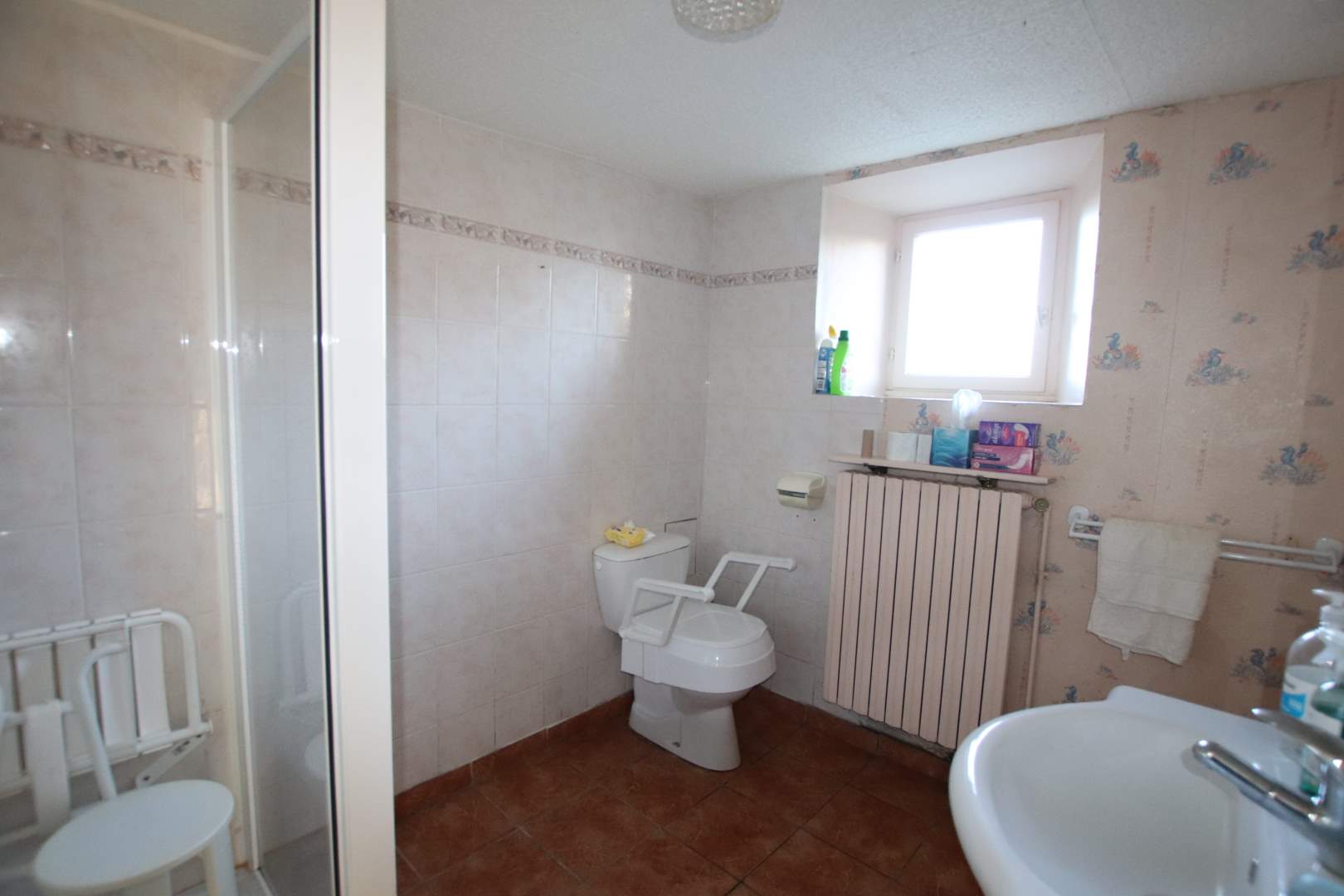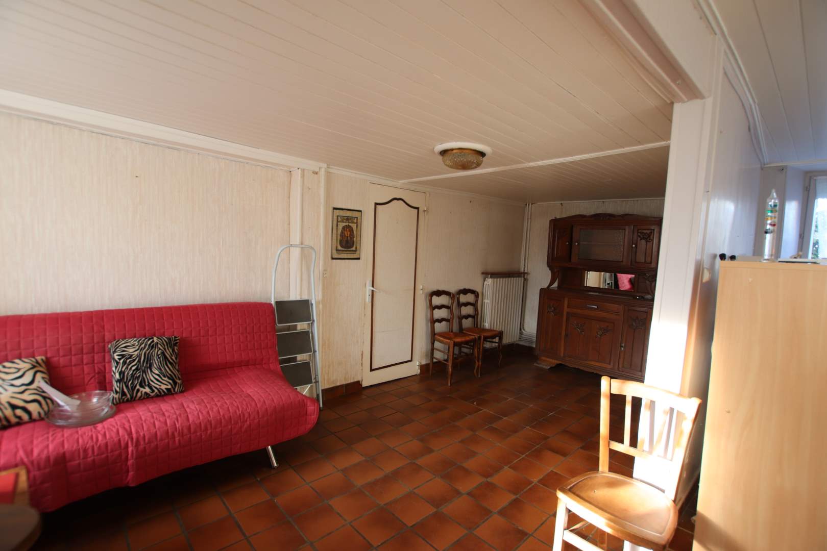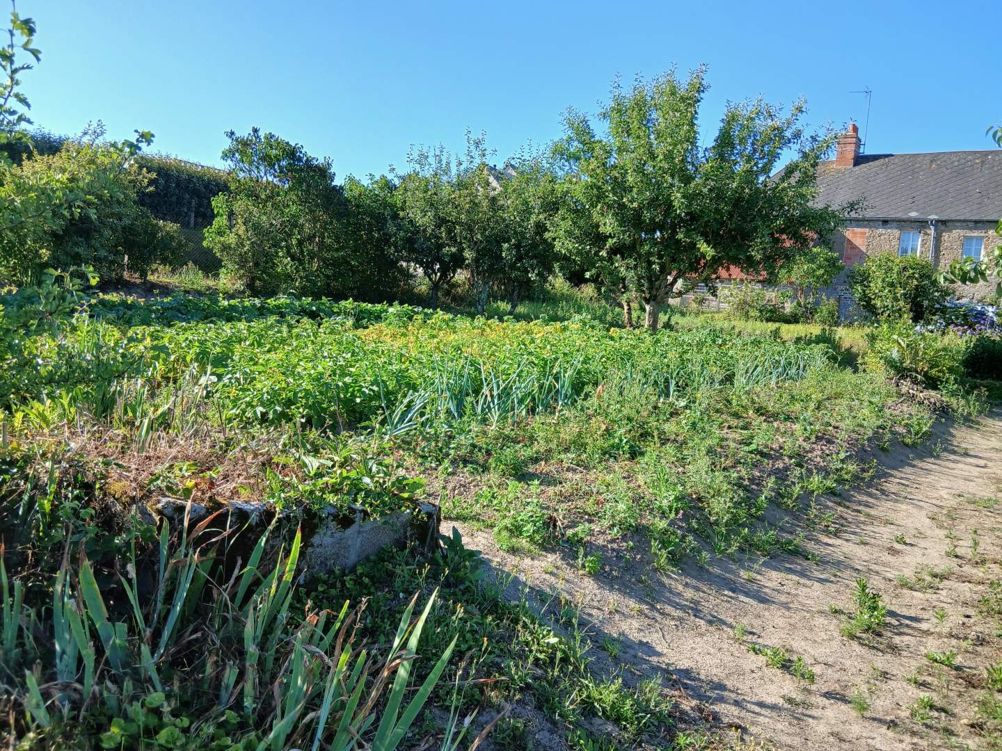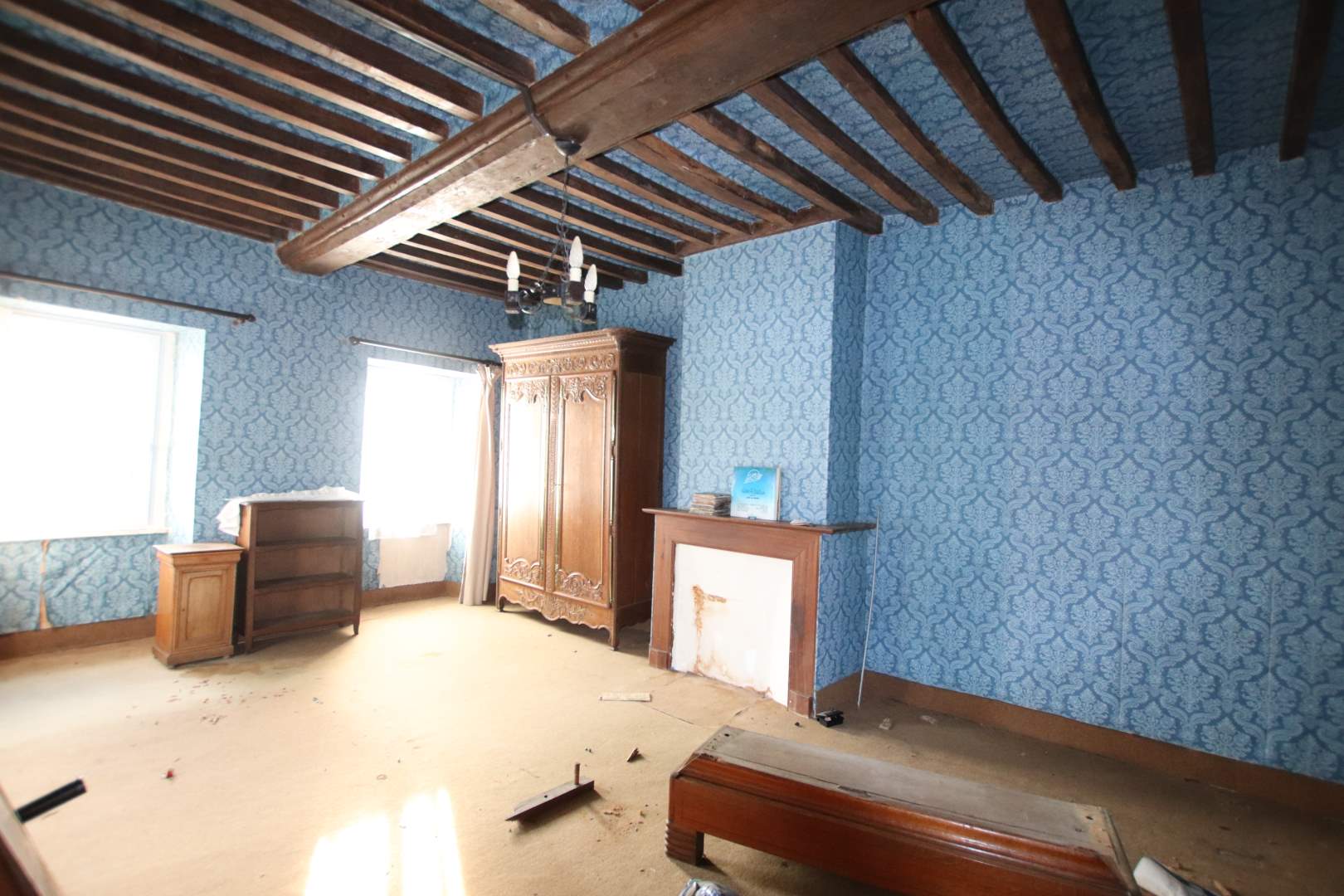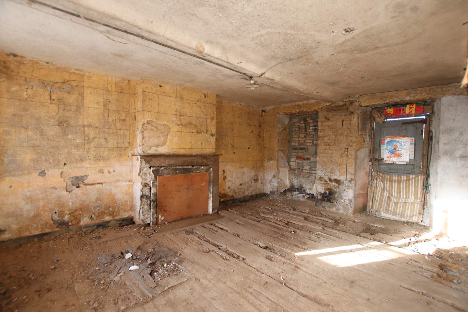 Une maison composée : RDC, entrée dans cuisine, salon, salle d'eau avec WC, arrière-cuisine/chaufferie, à l'étage, 1 chambre, 2 chambres communicantes. A la suite, ancienne maison à rénover de 3 pièces. En continuité, une grange, une ancienne écurie. Cour devant. Charreterie à l'arrière et terrain.