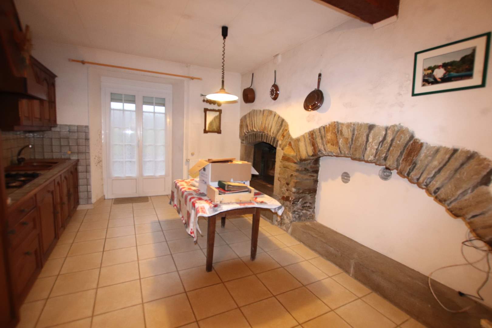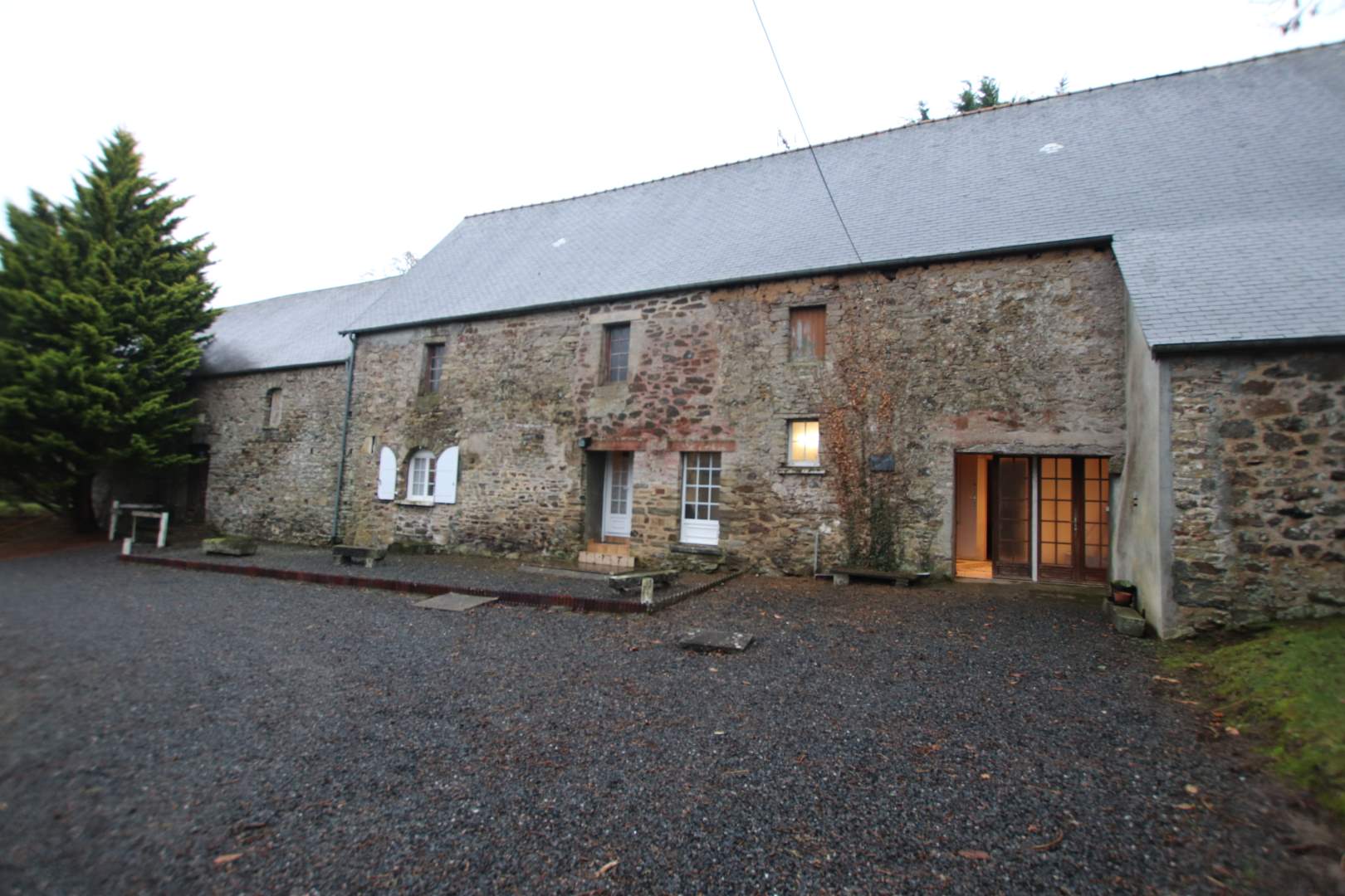 Une maison composée d'une entrée dans la cuisine ouverte sur le séjour, une chambre, un WC, une ssalle d'eau, une autre pièce, à la suite, cave où pressoir avec accès au grenier aménageable. A la suite, ancienne étable. L'ensemble dans un bâtiment en pierre.