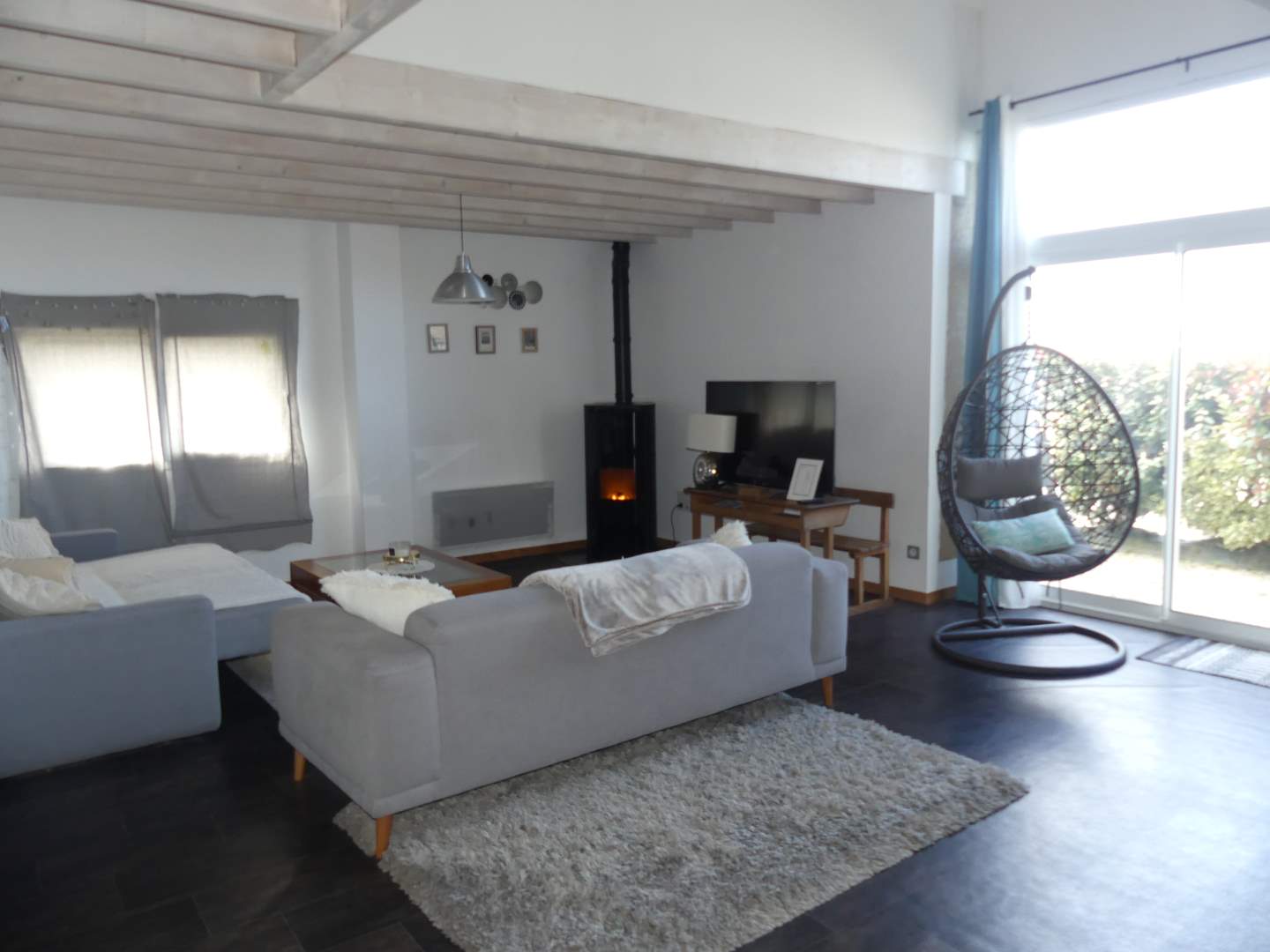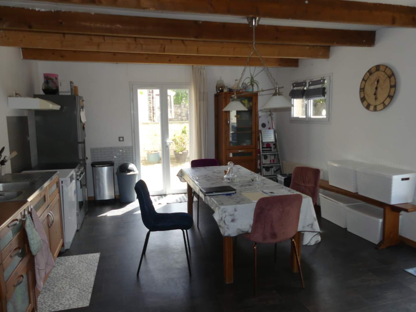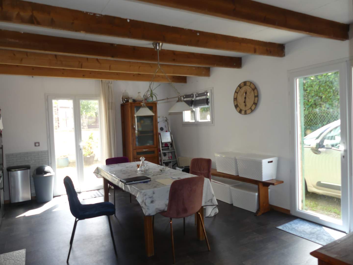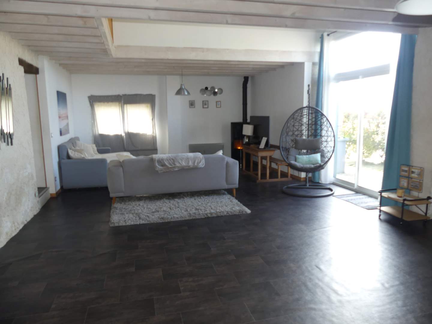 - Au-rez-de-chaussée : cuisine (26m²), séjour (56.60m²) avec poêle à granulées, salle d'eau, wc.