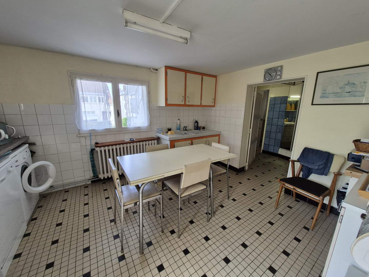 - au rez-de-jardin : une pièce avec évier, une pièce, une pièce avec douche et wc, une petite pièce, garage avec placard, dégagement.