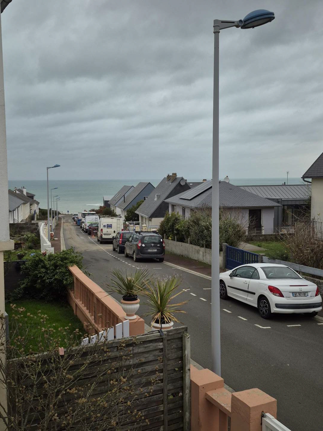 - au 1er étage : couloir, chambre avec placard, cuisine, salon (13.75m²), séjour (22m²) avec vue mer, débarras avec lave-linge, wc, salle d'eau, chambre.