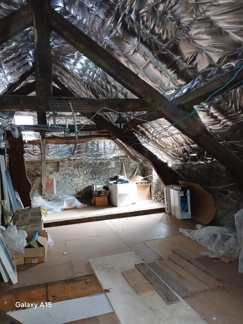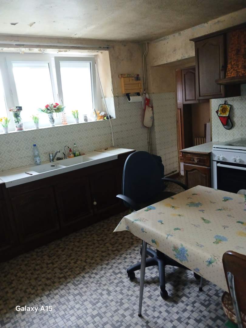 - Au rez-de-chaussée : entrée et couloir, cuisine, salle à manger et salon avec cheminée et insert (non gainé), buanderie/arrière cuisine, salle d'eau.