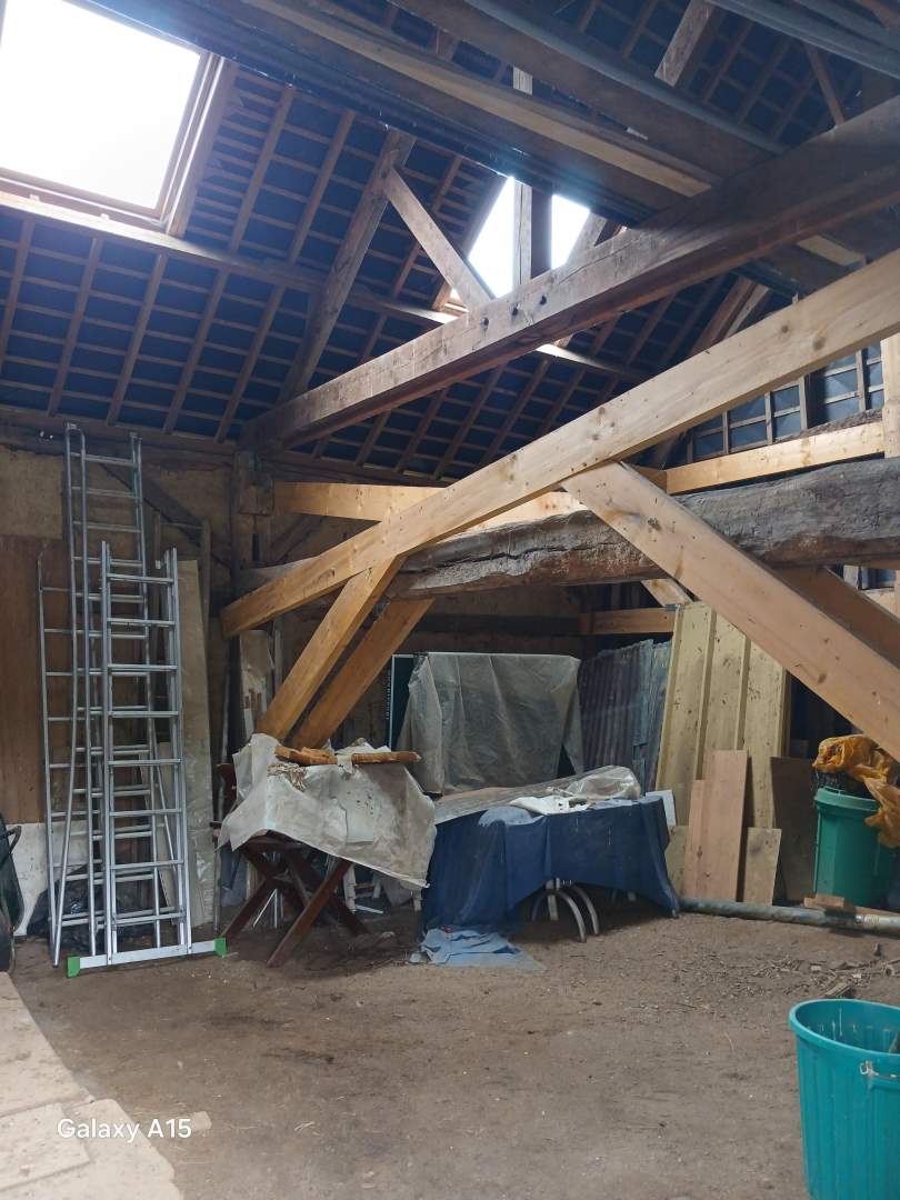 Une grange couverte en tuiles à usage de caves. Un hangar à usage d'atelier et garage.