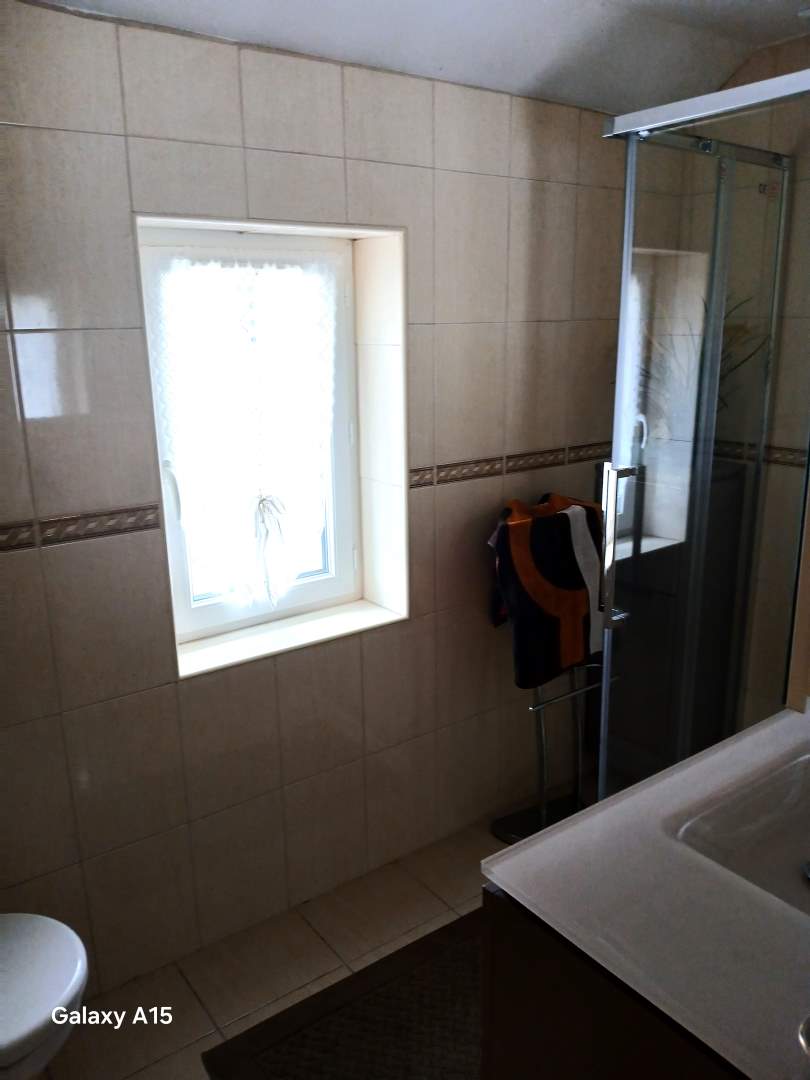 A l’étage : palier desservant deux chambres, wc avec lavabo.