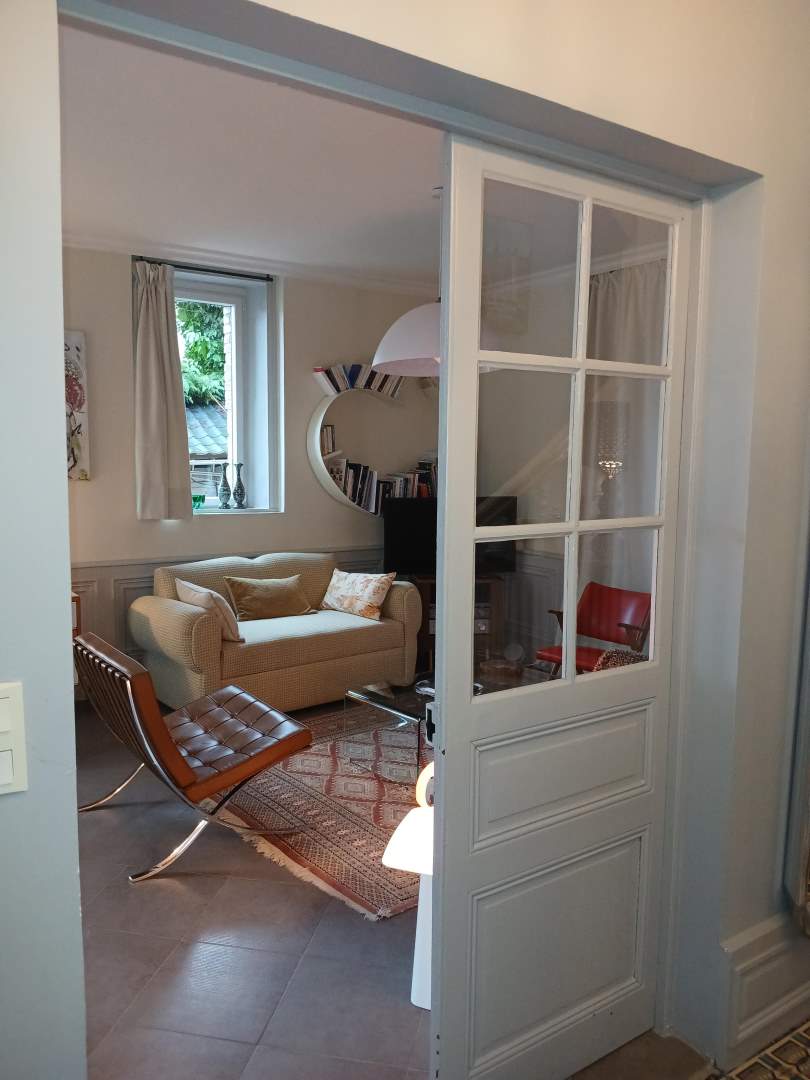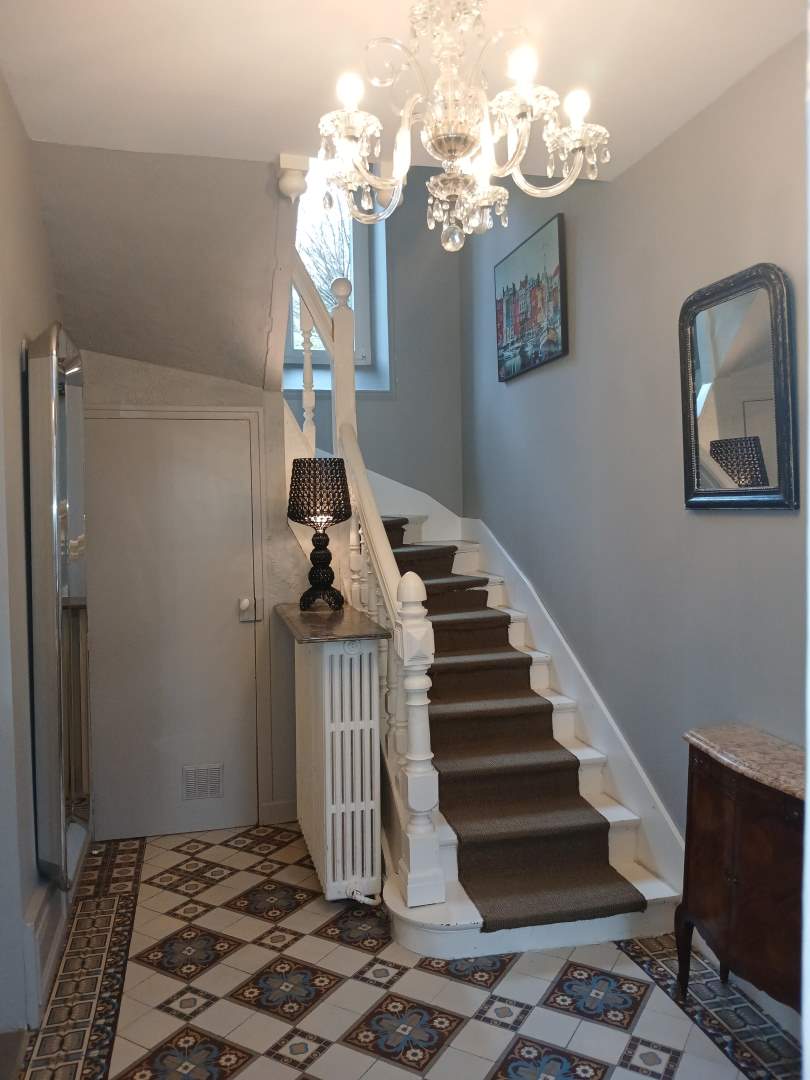 - Au 1er étage : palier desservant deux chambres avec placard et dressing, salle de bains, wc.