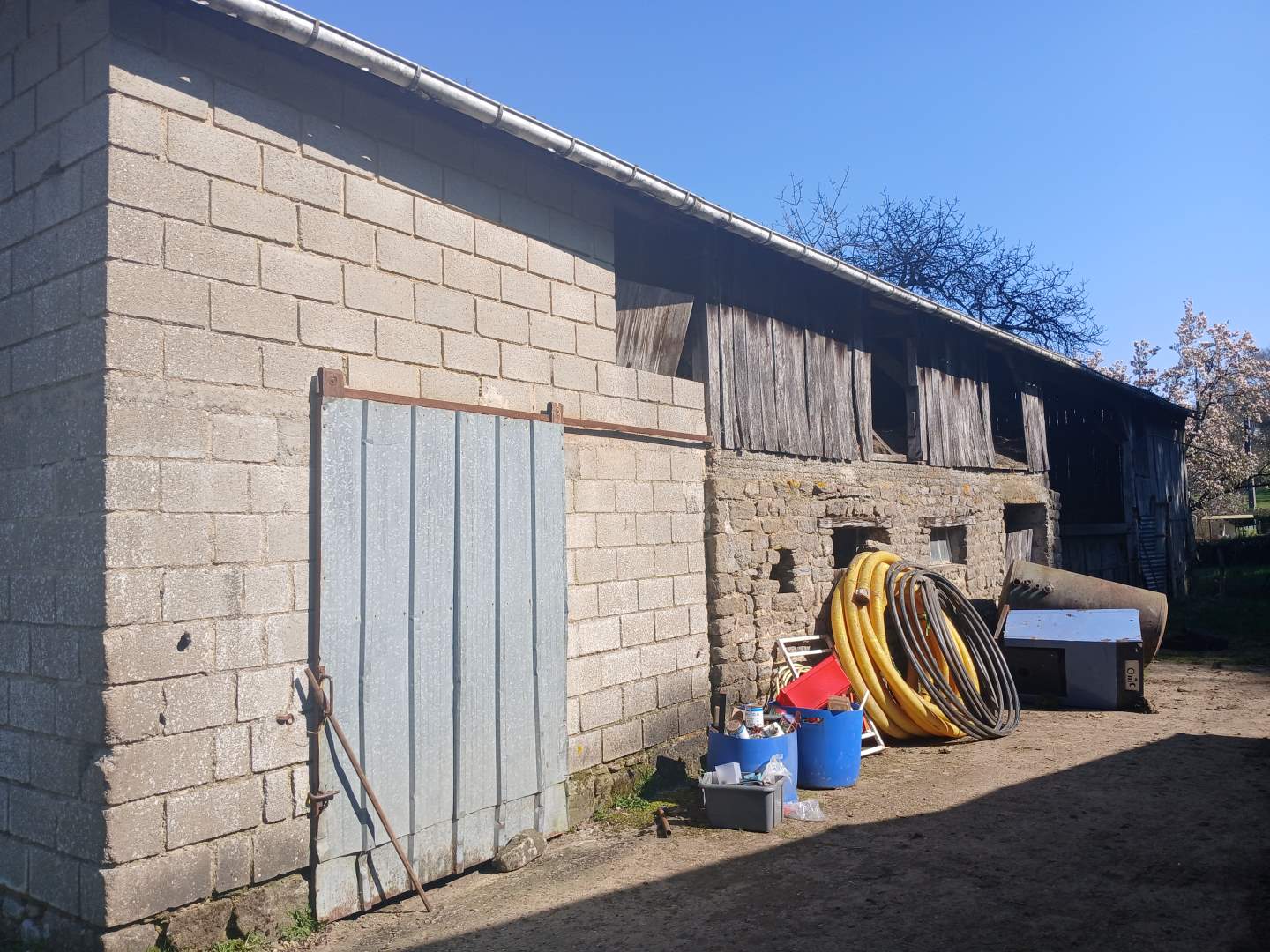 Dépendances : cave et garage. Autre grand garage. Hangar avec appentis sur l'arrière. Garage avec appentis sur le côté.