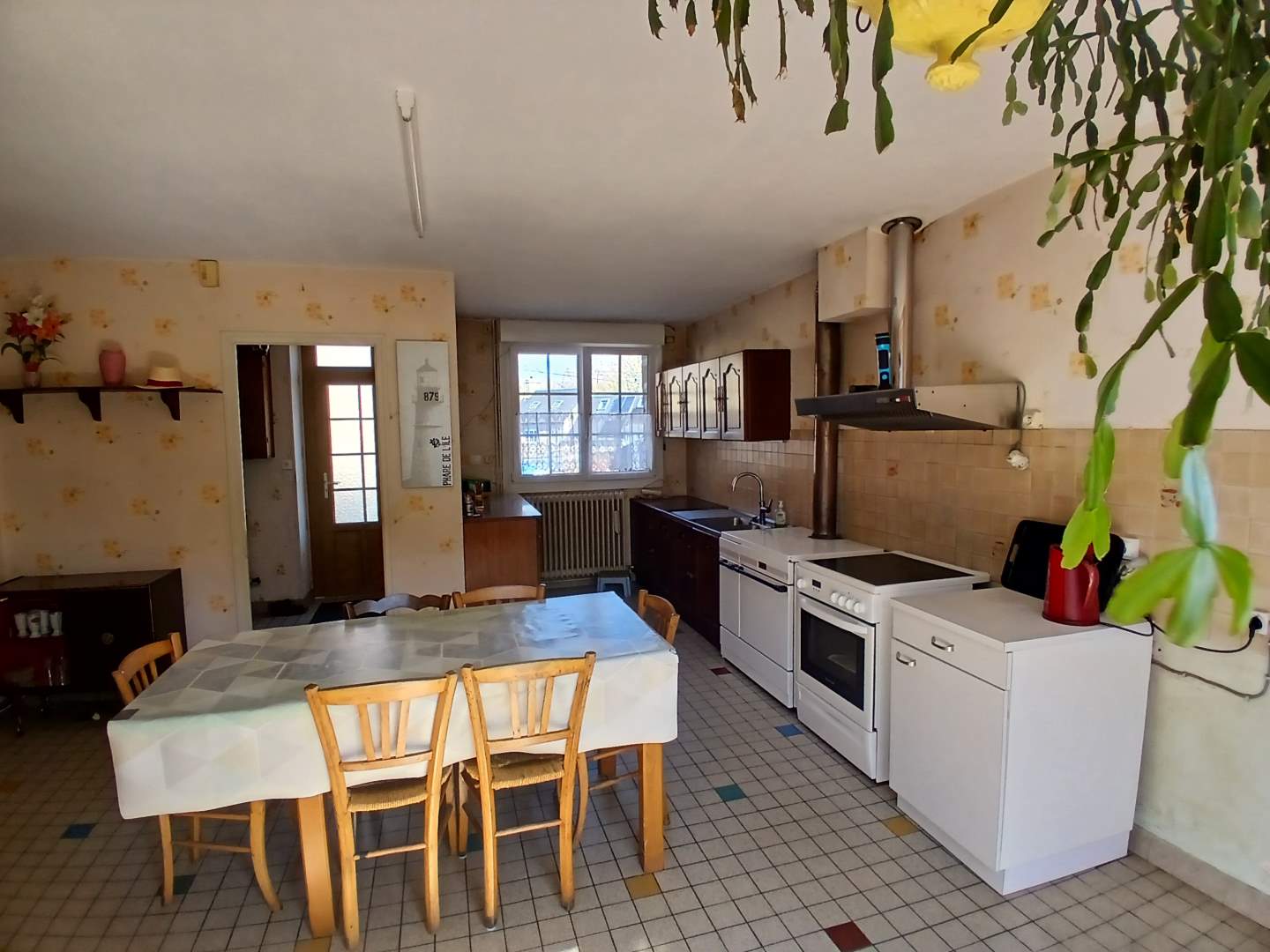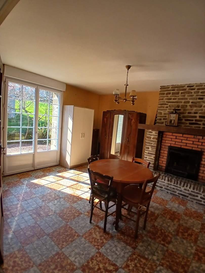 En rez de chaussée : entrée, dégagement, cuisine, salle à manger avec cheminée et insert, salle d’eau, wc, chaufferie, appentis.