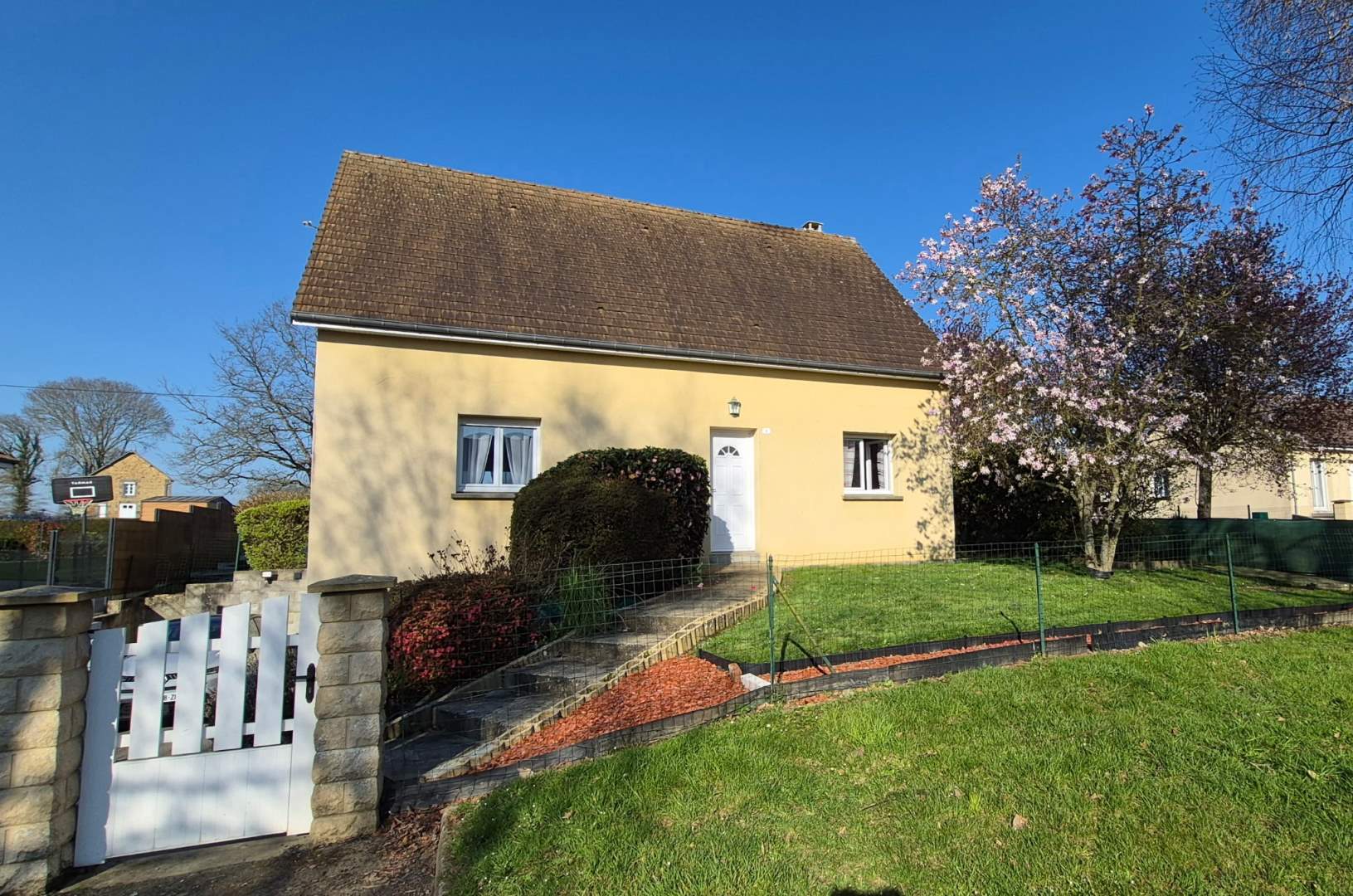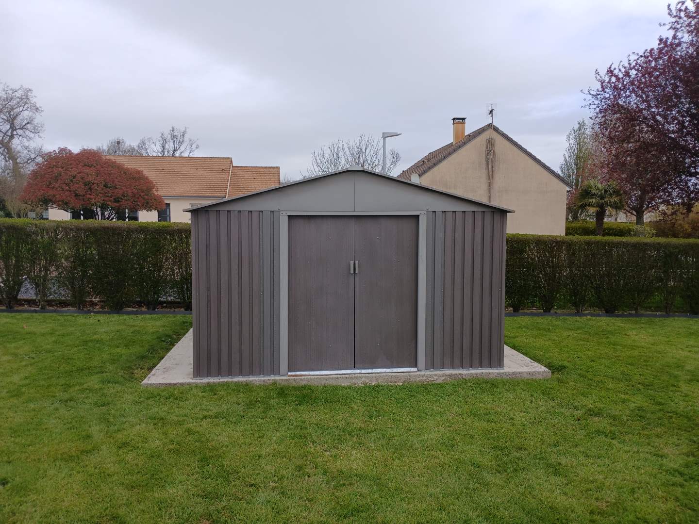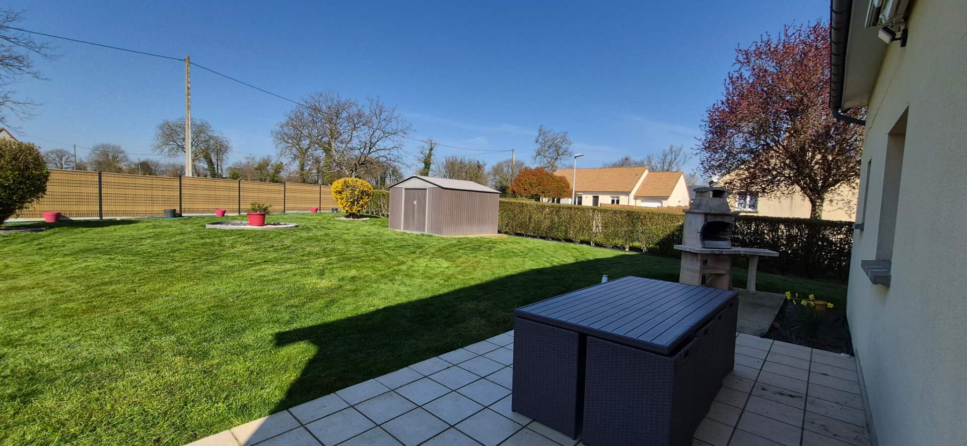 Jardin aménagé autour. Abri de jardin.