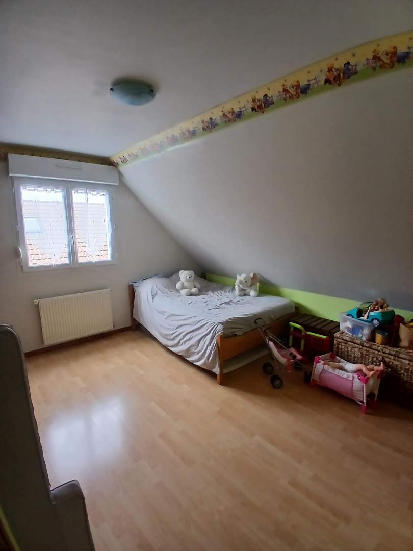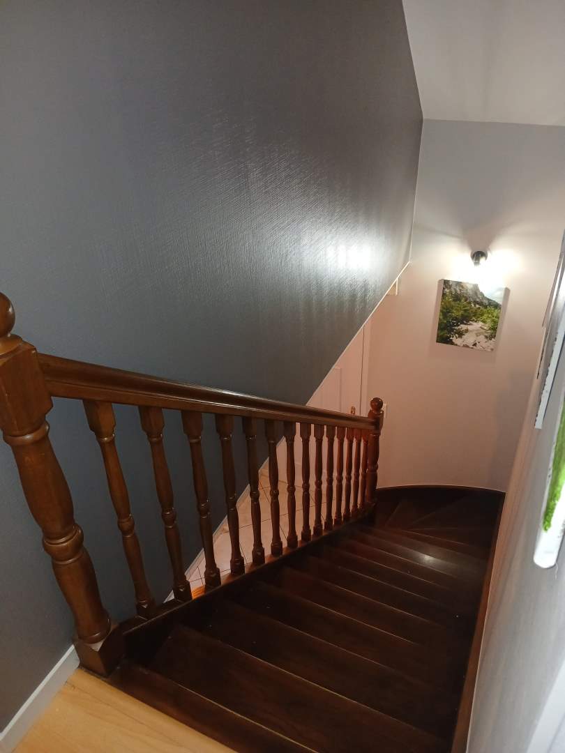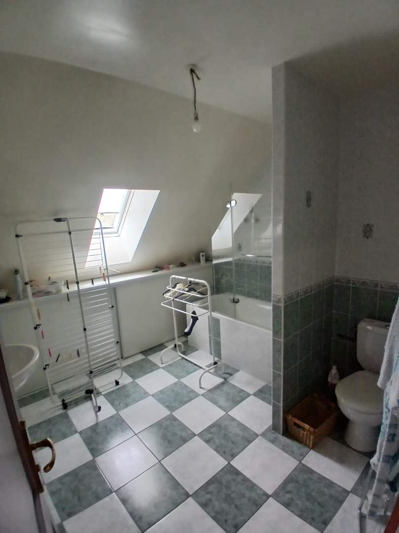A l’étage : couloir desservant trois chambres, bureau, salle de bains avec wc, bureau.