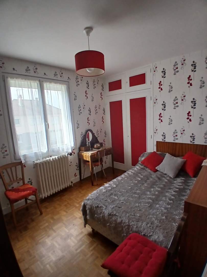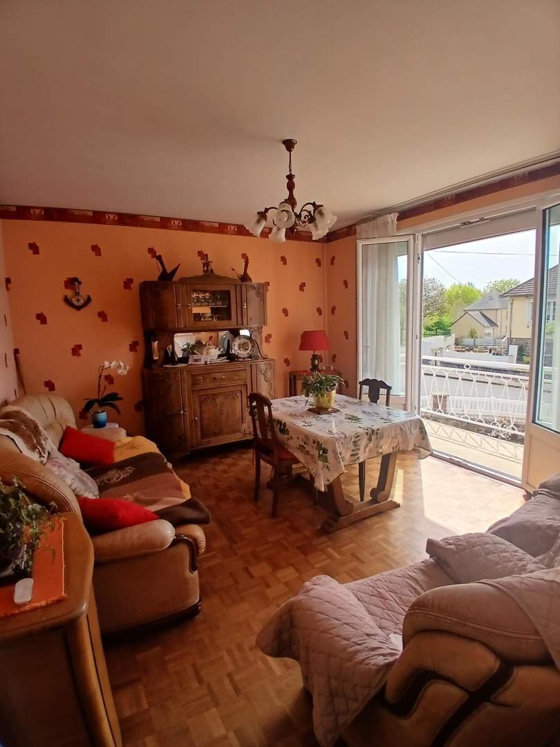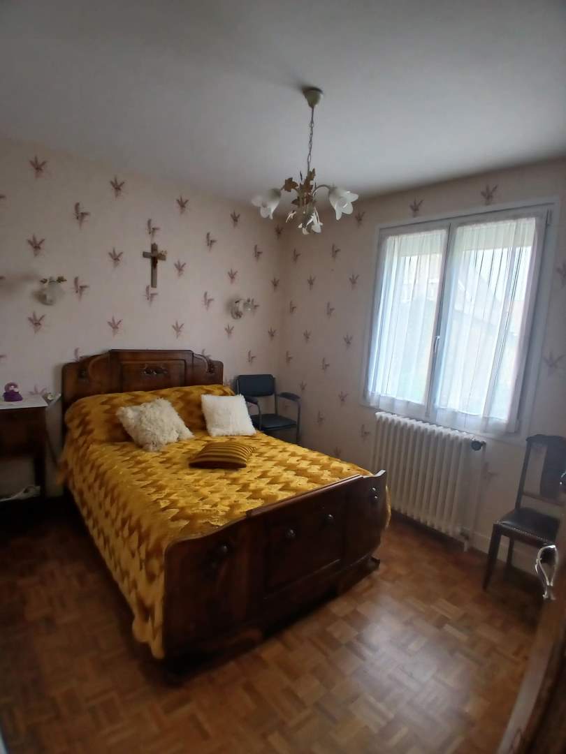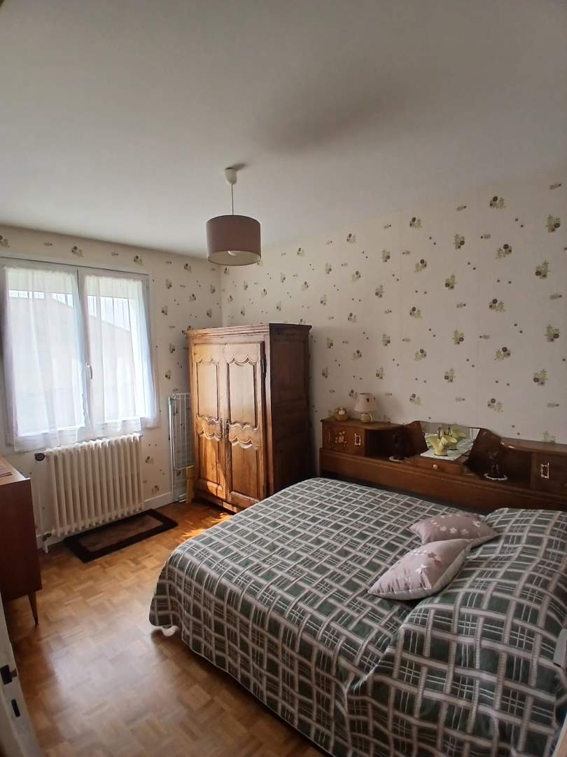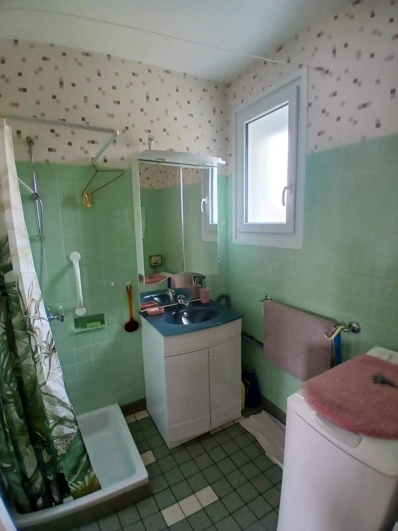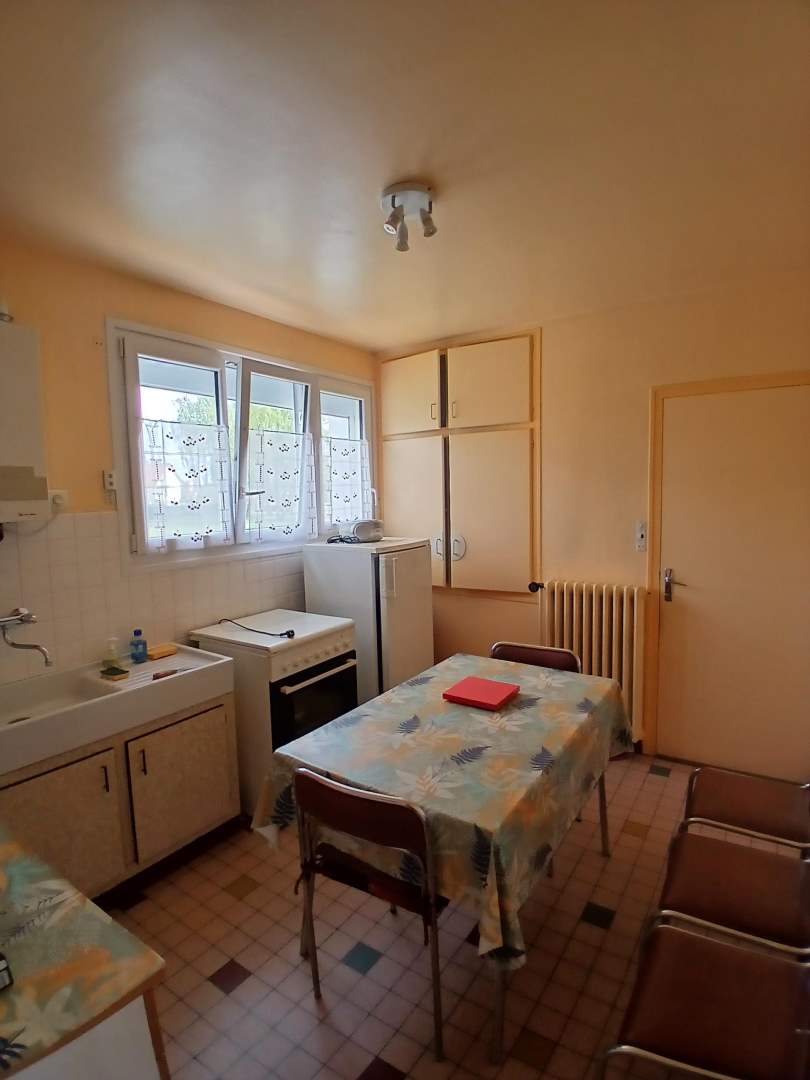 Entrée et couloir desservant une cuisine avec placards, séjour, trois chambres dont deux avec placards, une salle d’eau, un wc.