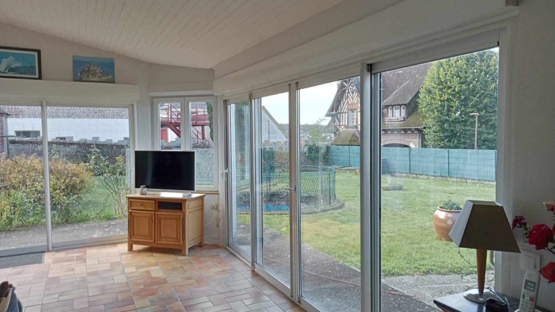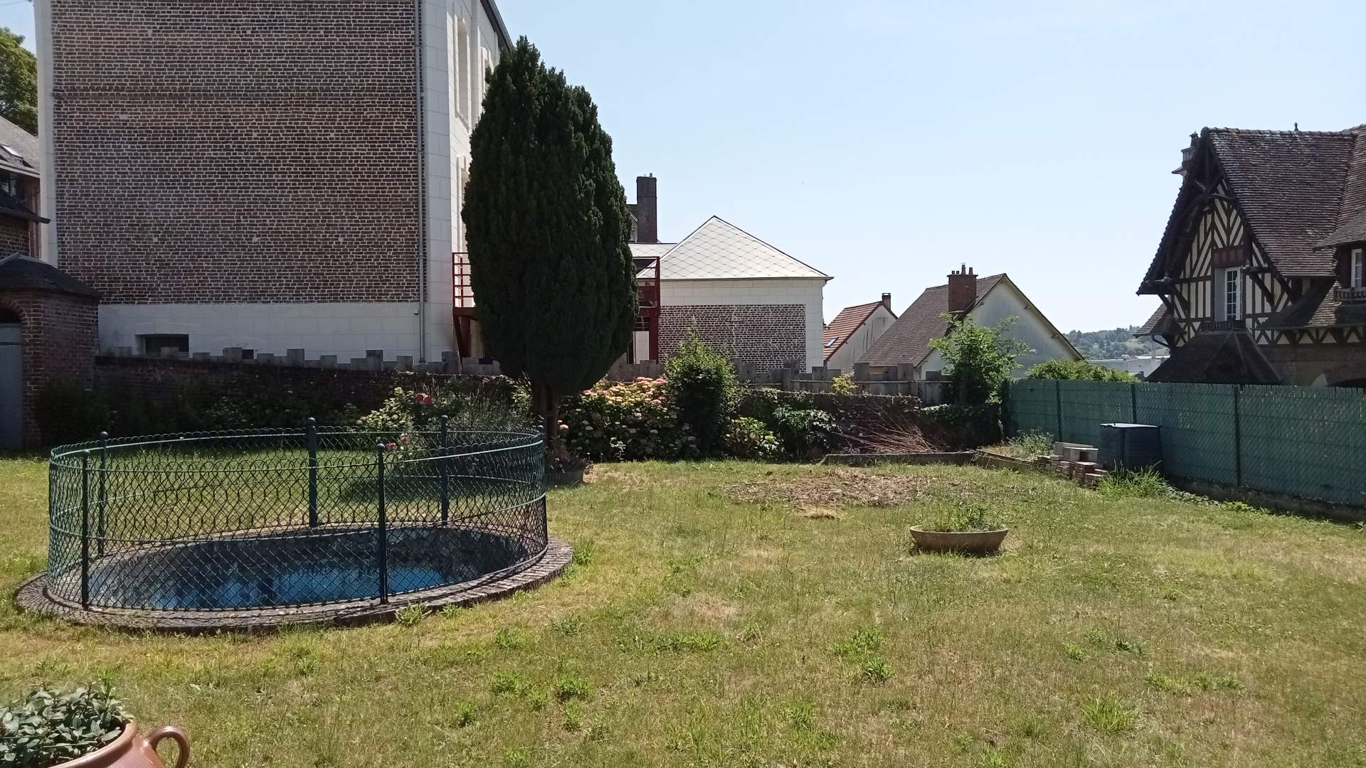 En rez de jardin, une véranda, une cuisine, caves, une chambre, une salle de douche, un wc, pièces à finir.