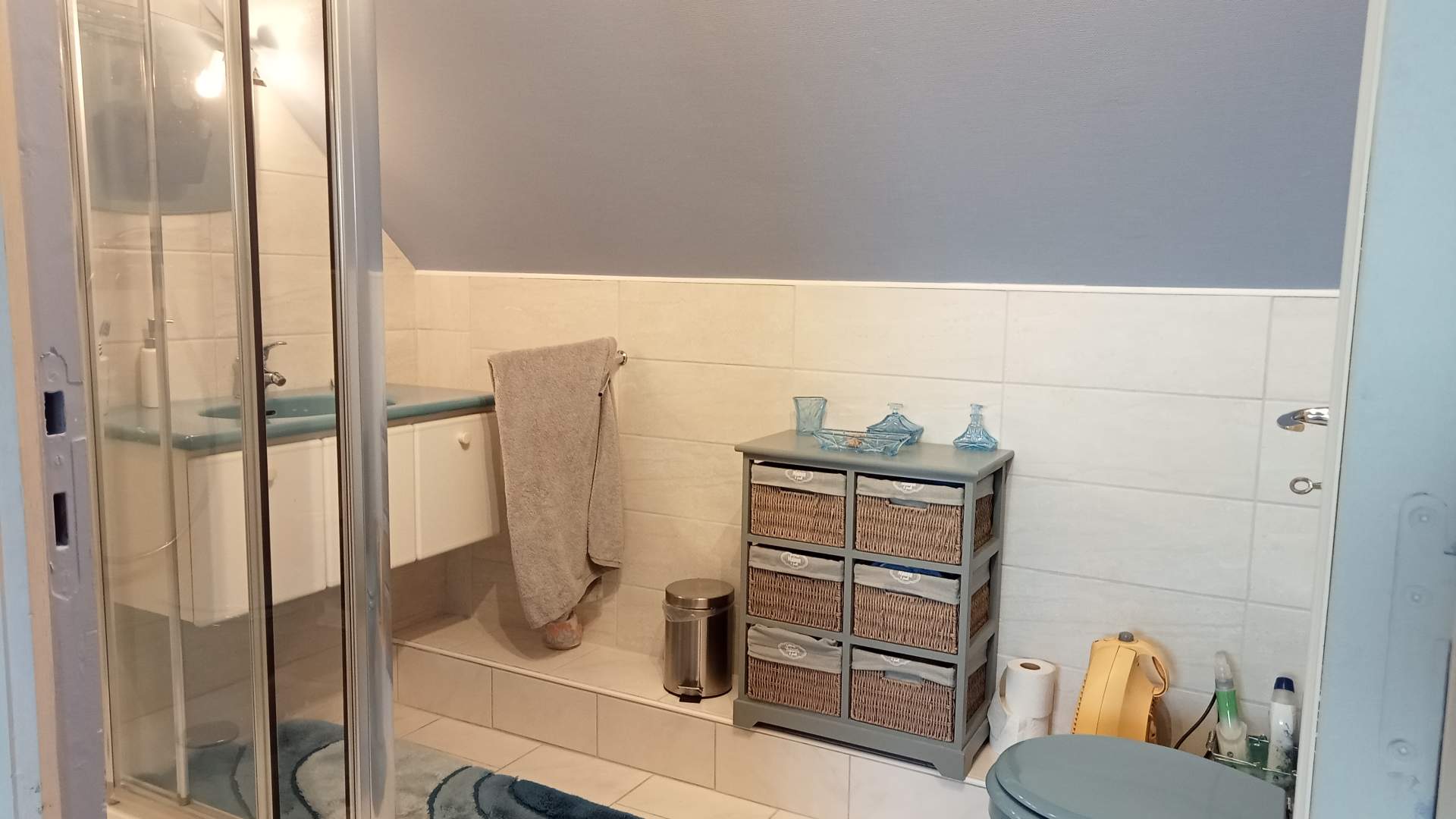 Etage : grande pièce palière, 2 chambres, salle de douche avec wc, .
