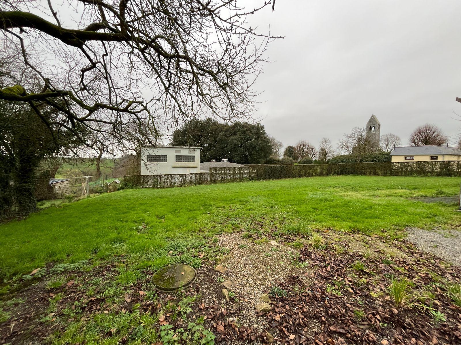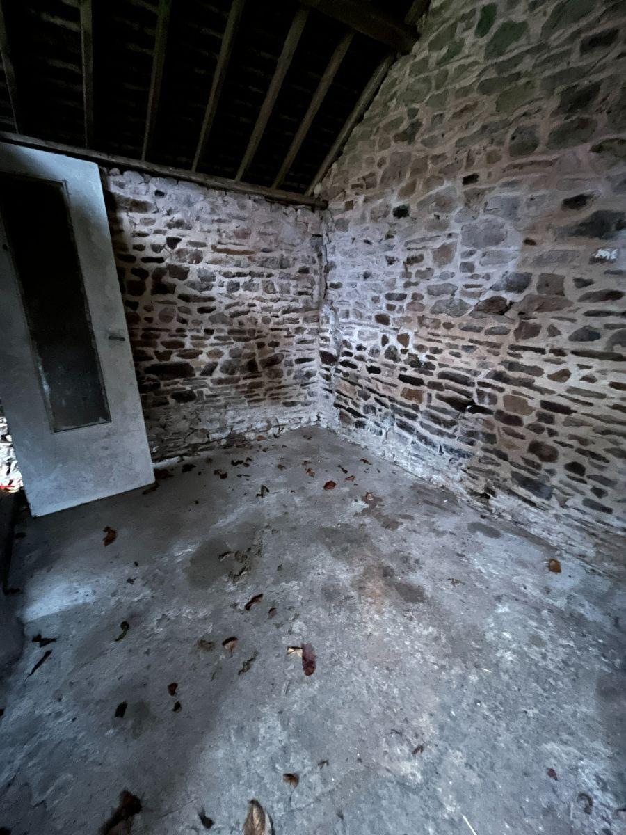 Cour et jardin clos sur l'arrière avec une petite dépendance en pierre à usage de stockage, garage bardé avec appentis.