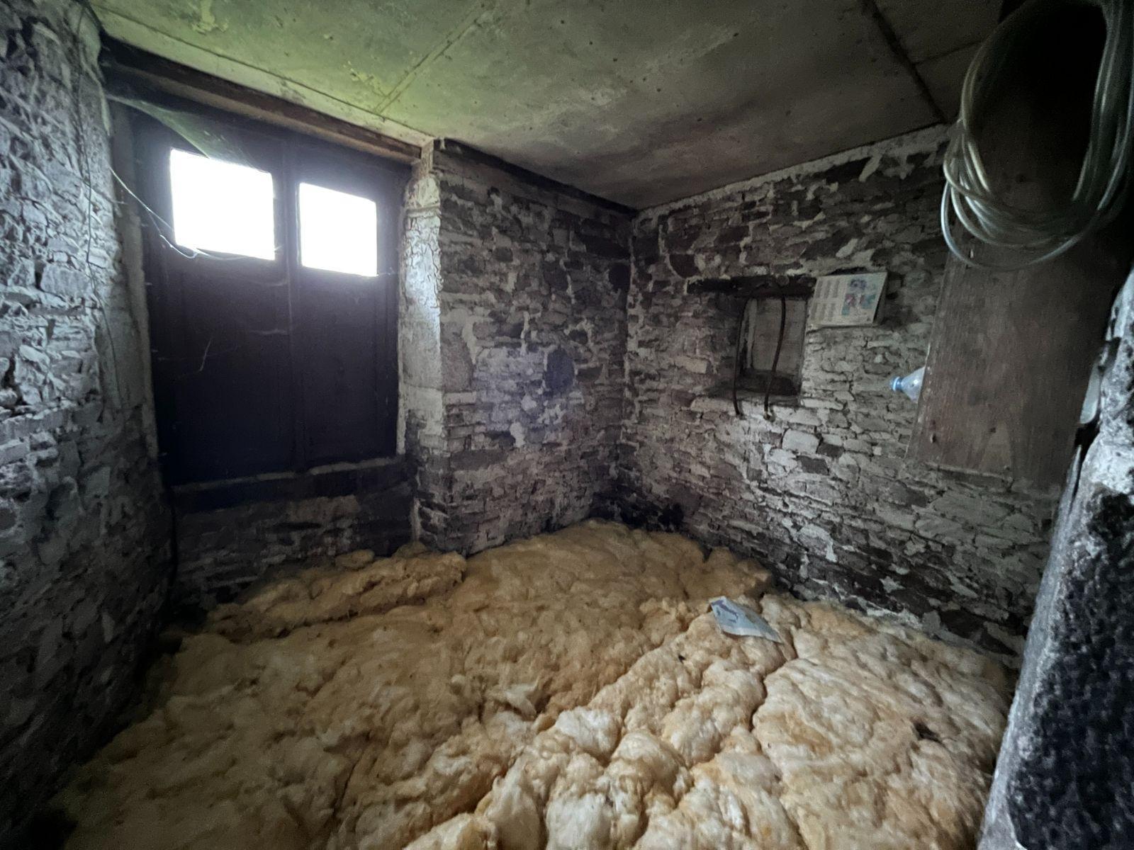 Maison en pierre à restaurer, composée d'une entrée, pièce de vie avec cuisine, cellier, dégagement, salle d'eau avec wc, une chambre et arrière-cuisine.