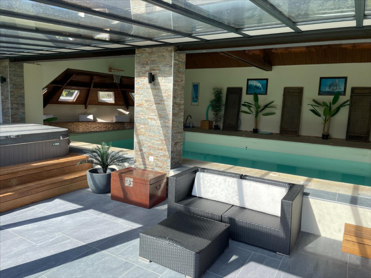 Autre bâtiment dédié au bien-être comprenant petite salle de sport, des douches, piscine couverte et chauffée (7,97 x 4,45) et jacuzzi pour en profiter toute l'année