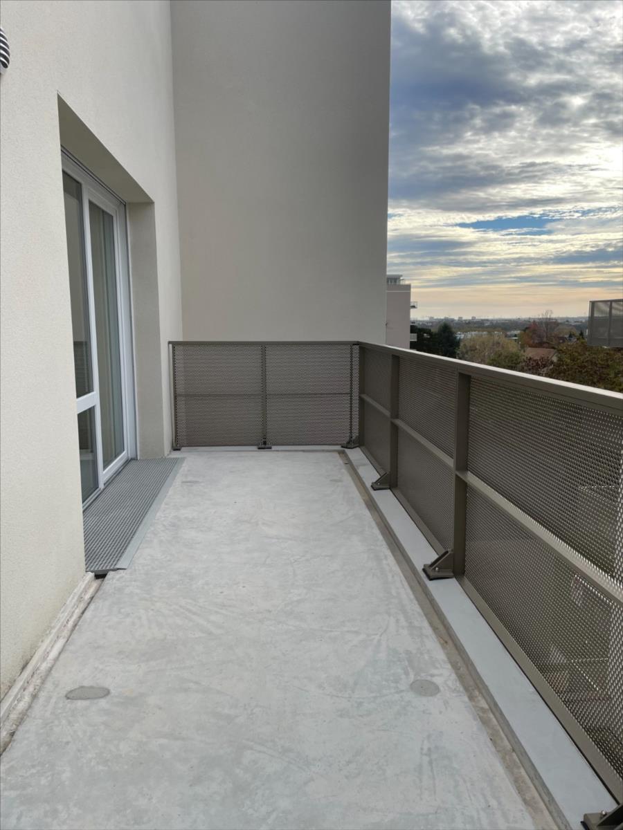 Dans résidence neuve, bel appartement de 72,23 m² situé au 5ème et dernier étage avec ascenseur, exposé Sud-Ouest avec vue dégagéeIl comprend une belle pièce de vie de 34,49 m² incluant la cuisine avec accès sur balcon-terrasse de 20,80 m², deux chambres, salle d'eau, wc, cellier.Place de stationnement privative en sous-sol avec cave.Huisseries PVC double vitrage avec volets roulants électriquesChauffage individuel gaz