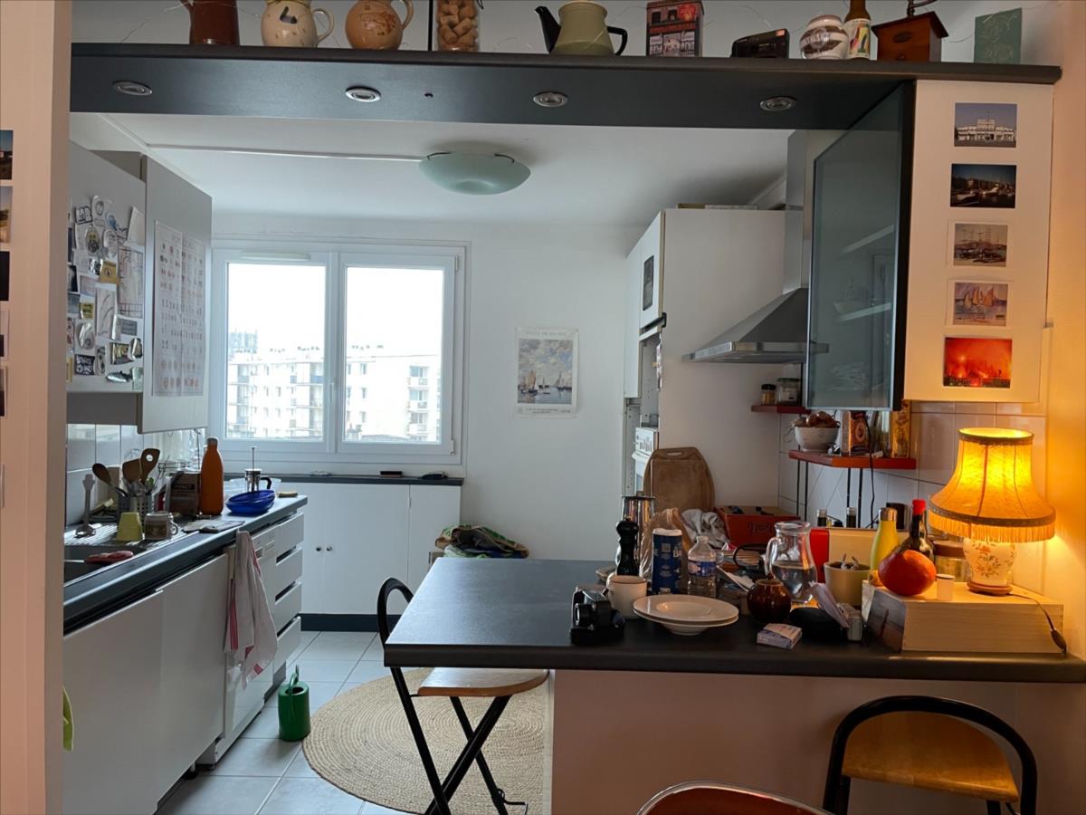 Appt F2 traversant de 46,68 m² situé au 4ème et dernier étage sans ascenseur.Il est composé d'une entrée, séjour avec cuisine US aménagée équipée (four, plaque vitrocéramique, hotte et lave-vaisselle), arrière cuisine, une chambre avec placards, salle d'eau et wc, balcon.Cave.Huisseries PVC double vitrageChauffage individuel gaz
