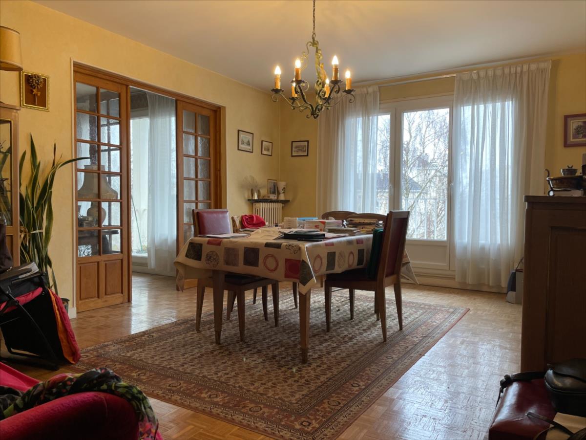 Dans résidence, au 2ème étage sans ascenseur, bel appartement F4 de 84,11 m² comprenant vaste entrée avec placard, séjour parqueté exposé Sud, salon ou chambre avec balcon, deux autres chambres, cuisine aménagée, arrière cuisine, salle de bains.Cave et place de stationnement privativeChauffage collectif
