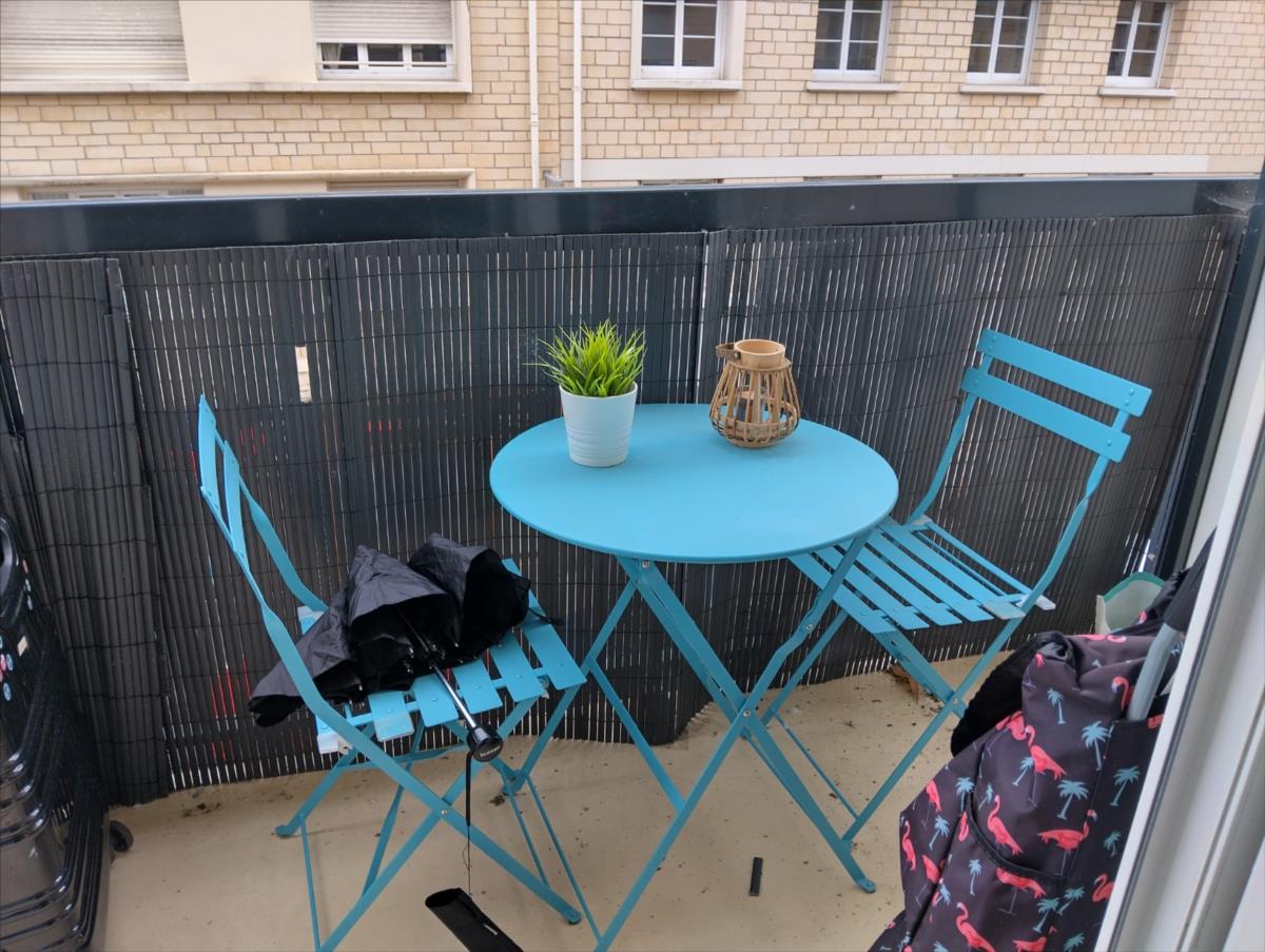 d’eau avec wc, cuisine aménagée et équipée (plaque de cuisson, réfrigérateur Top, hotte, micro-ondes), pièce de vie, balcon.Chauffage individuel électrique.Loyer 575.93 € + prov./charges 57 € (en ce compris taxe OM)DG 1151.86 €Frais de Bail 250 €DPE C