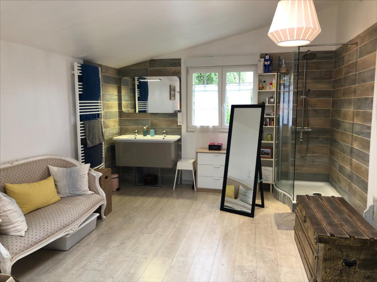 Beau pavillon de 7PP d'une surface habitable de 121,36 m² composée de :-au rez-de-chaussée : belle pièce de vie avec cuisine US aménagée équipée de 43,65 m² avec accès sur terrasse, une chambre, salle d'eau, wc et une suite parentale de 27,48 m² avec douche et lavabo.- à l'étage : palier desservant trois chambres mansardées, salle de bains avec wc.Sous-sol completJardin clos de 603 m².Huisseries PVC double vitrageChauffage par pompe à chaleur