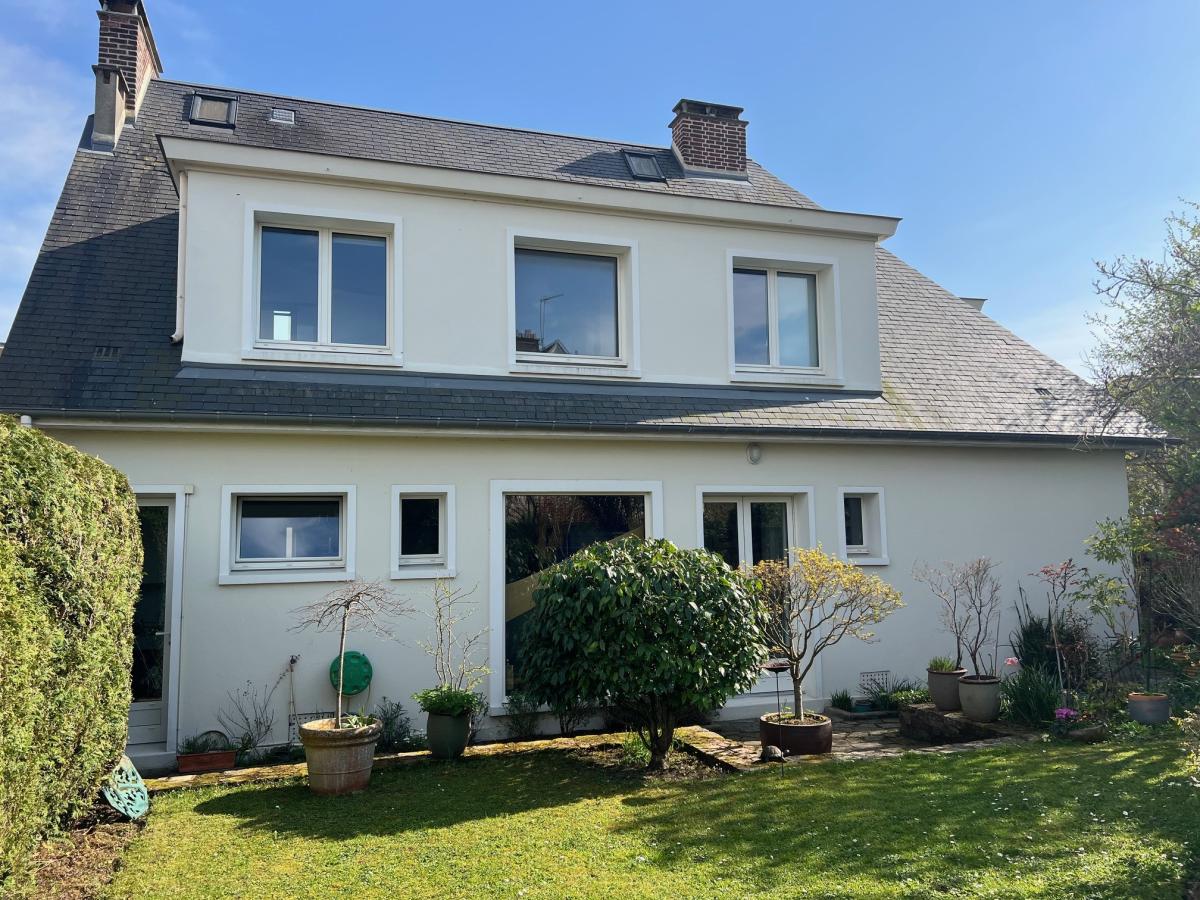 CAEN CENTRE, proche Fossés Saint Julien, belle maison d'architecte de la reconstruction de plus de 220 m2 habitable, dans un ETAT IRREPROCHABLE, comprenant séjour salon 40 m2, cuisine aménagée 15 m2, arrière cuisine, 5 chambres, bureau, salle de bains, 2 salles d'eau, 3 wc. Cave et garage. Terrain clos de 355 m2 au calme. DPE : D Contacter : Olivier FAURE au 06.33.17.39.74 pour informations et visites. Les informations sur les risques auxquels ce bien est exposé sont disponibles sur le site Géorisques : www. georisques. gouv. fr Consultez nos tarifs : http://www.dvml-notaires.fr/tarif/