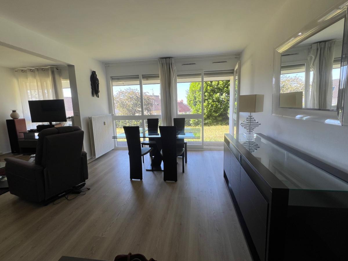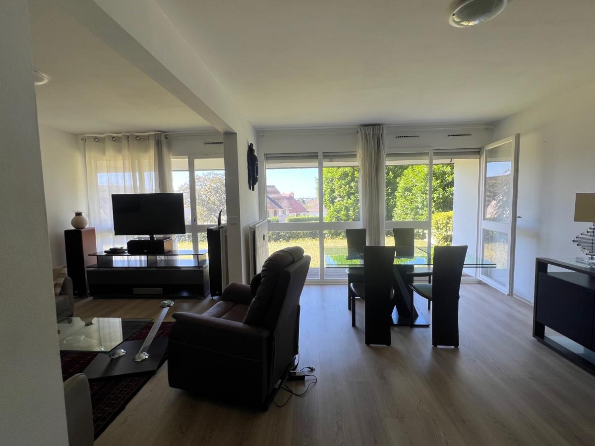CAEN RIVE GAUCHE - Beau T4 de 84 m2 en bon état, sis au rez de chaussée de l'immeuble avec vue dégagée sur verdure, comprenant entrée avec placards, séjour salon 31 m2, cuisine aménagée, séchoir, 2 chambres, salle d'eau, wc, dégagement avec placards. Terrasse bien exposé. Cave. Charges collectives gaz (Chauffage urbain sous peu) 230 euros mensuel incluant chauffage, eau chaude et froide, entretien des espaces vert. DPE : D