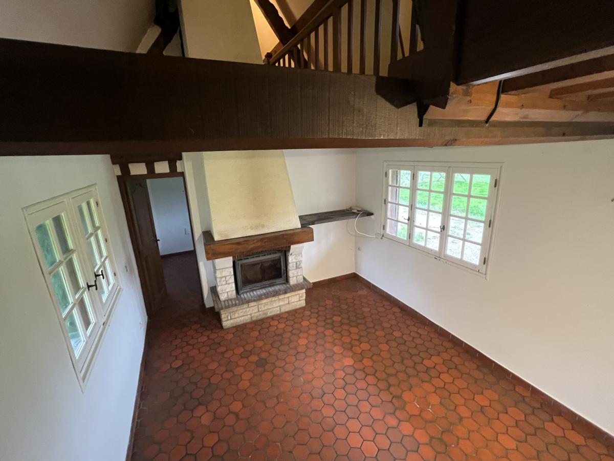AUBERVILLE proche HOUGALTE, ravissante chaumière comprenant séjour avec cheminée, cuisine aménagée, chambre, salle de bains, wc, à l'étage, chambre et bureau. Carport attenant. Terrain de 1050 m2 au calme. Travaux de rafraîchissement à prévoir et assainissement. IDEAL RESIDENCE SECONDAIRE. DPE : G