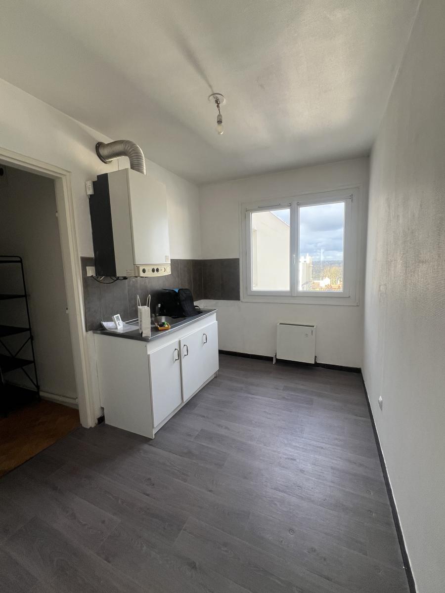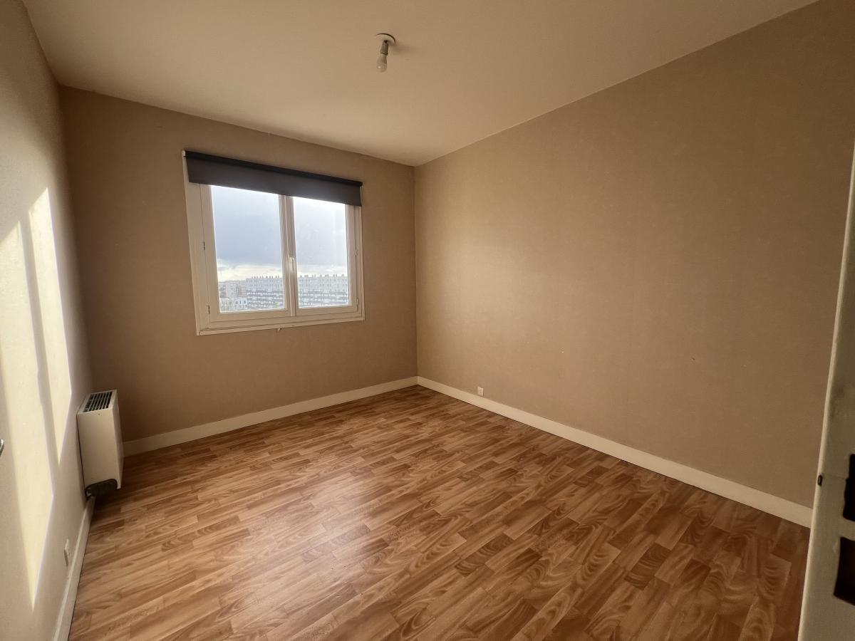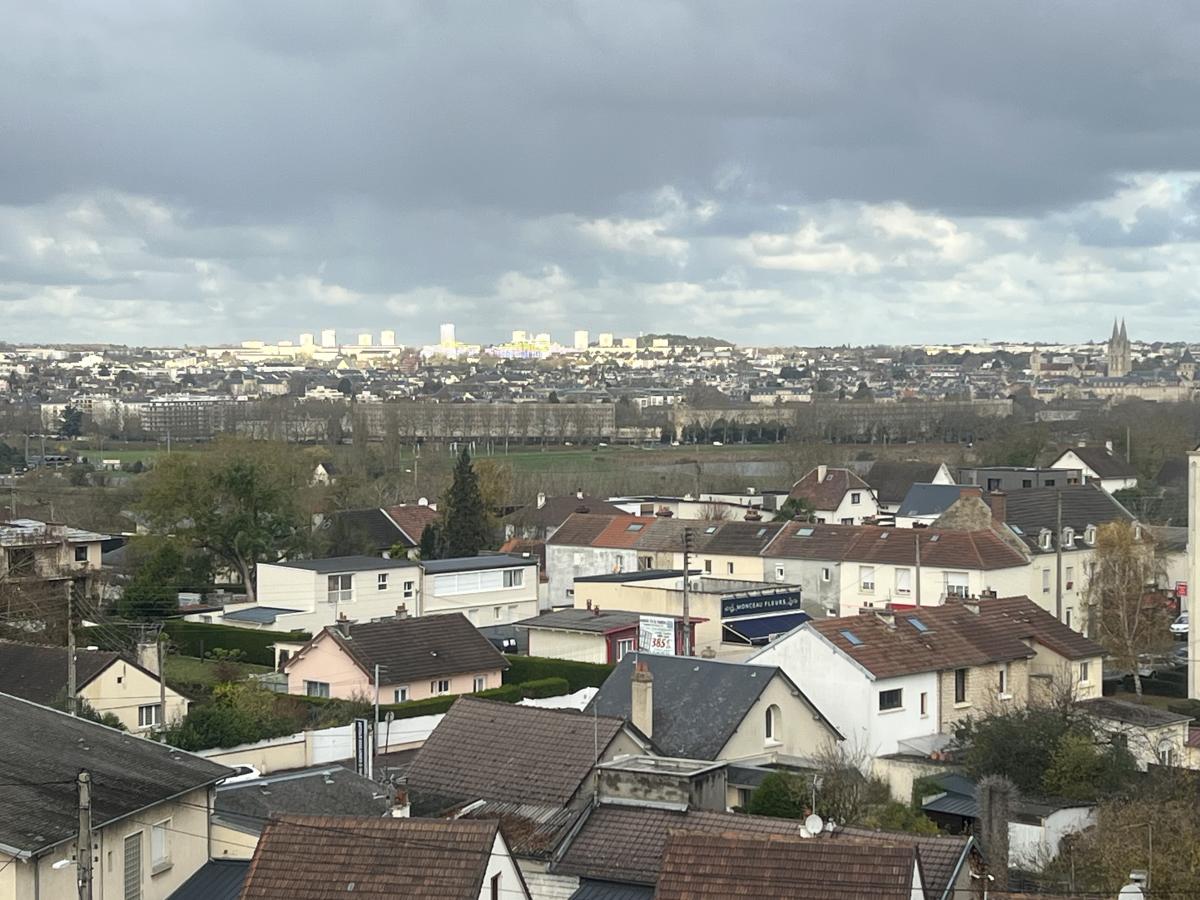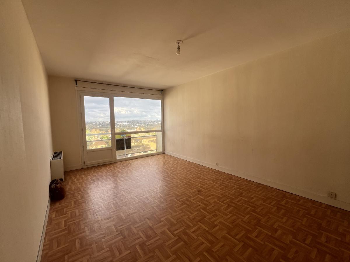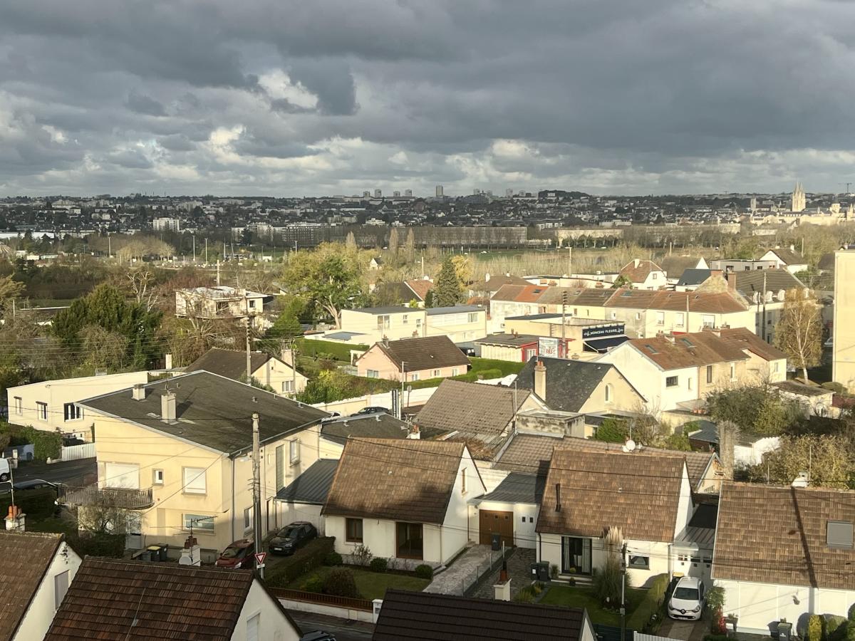 CAEN rive droite résidence de l'Enclos, au dernier étage de l'immeuble avec ascenseur, 4 pièces de 74.50 m2 comprenant entrée, séjour 21 m2, cuisine, arrière cuisine, 3 chambres, salle de bains, wc, dégagement avec placards. Cave. Possibilité d'acquérir en sus un garage. Chauffage individuel au gaz. Charges 140 euros mensuel. Bon état. Vue imprenable. DPE : E