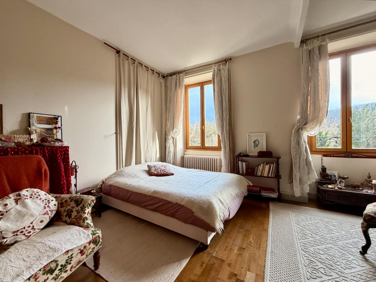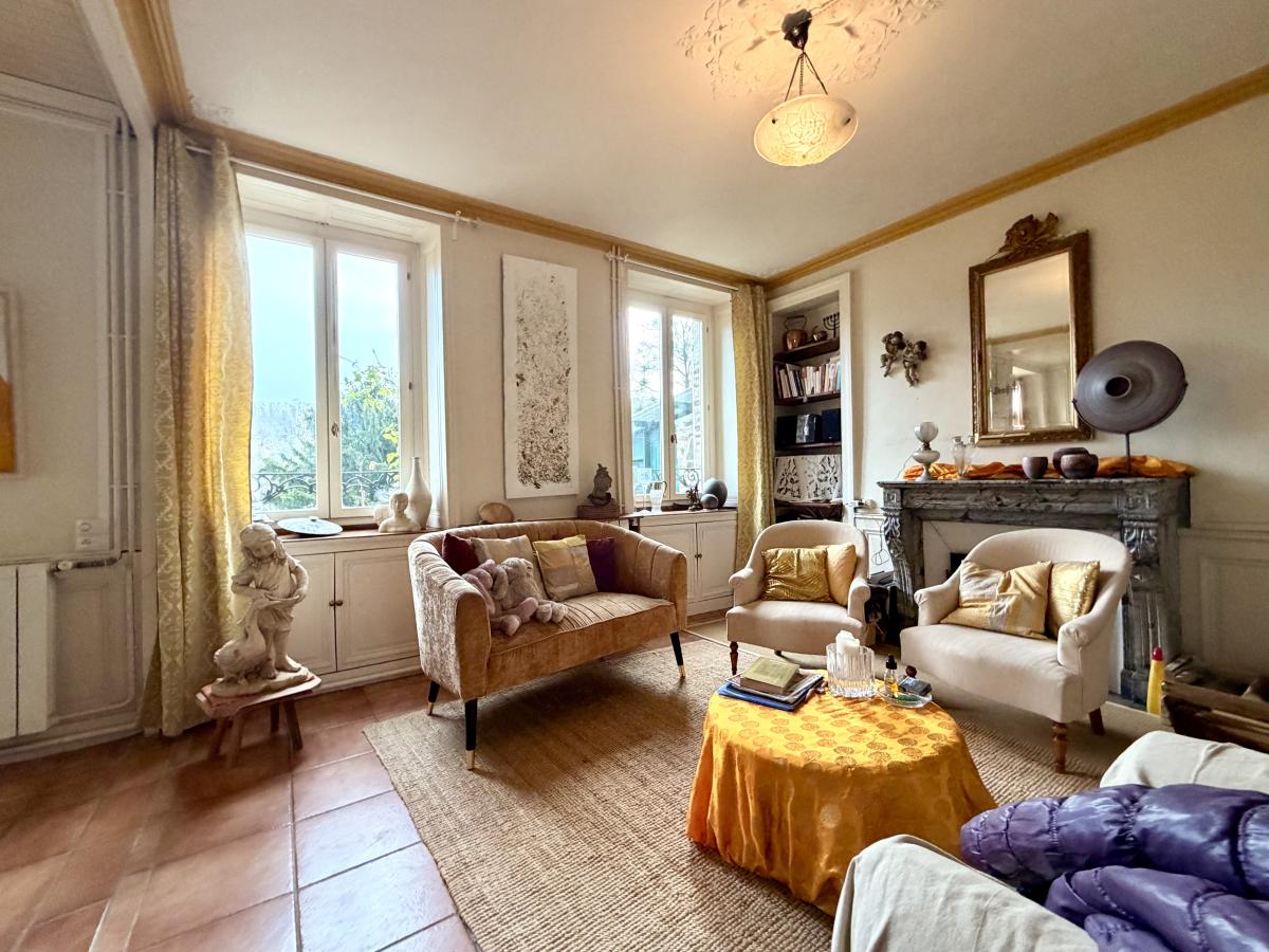 Maison ancienne en pierre pleine de charme comprenant entrée, séjour-salon avec poêle à bois, cuisine. Au 1er étage, palier, salle d'eau, wc, deux chambres. Au deuxième étage, trois pièces à aménager permettant de créer deux chambres et une salle d'eau.