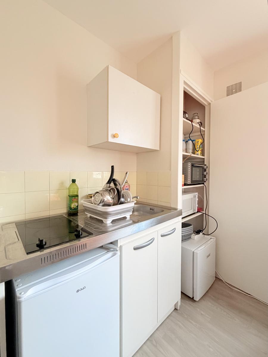 Rue du Moulin au Roy, au calme, à 50 mètres du campus 1, studio de 23 m² situé au rez-de-chaussée, récemment refait, comprenant entrée, salle d'eau avec wc, séjour avec cuisine ouverte. Une cave. Une place de parking.