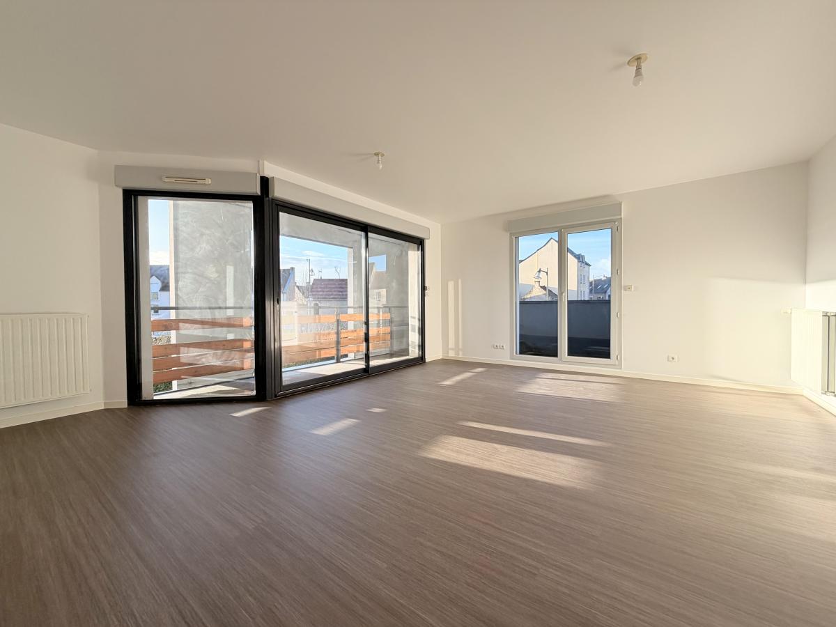 Dans le centre ville de Douvres, dans un immeuble récent, appartement F4 de 95 m² situé en rez-de-chaussée surélevé, comprenant entrée avec placard, cuisine, séjour-salon avec balcon, dégagement, wc, dressing, salle de bains, trois chambres. Une cave. Deux parkings.