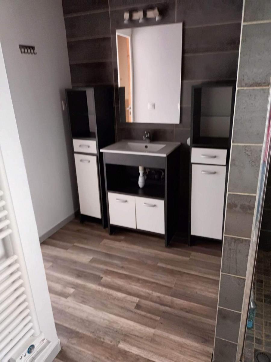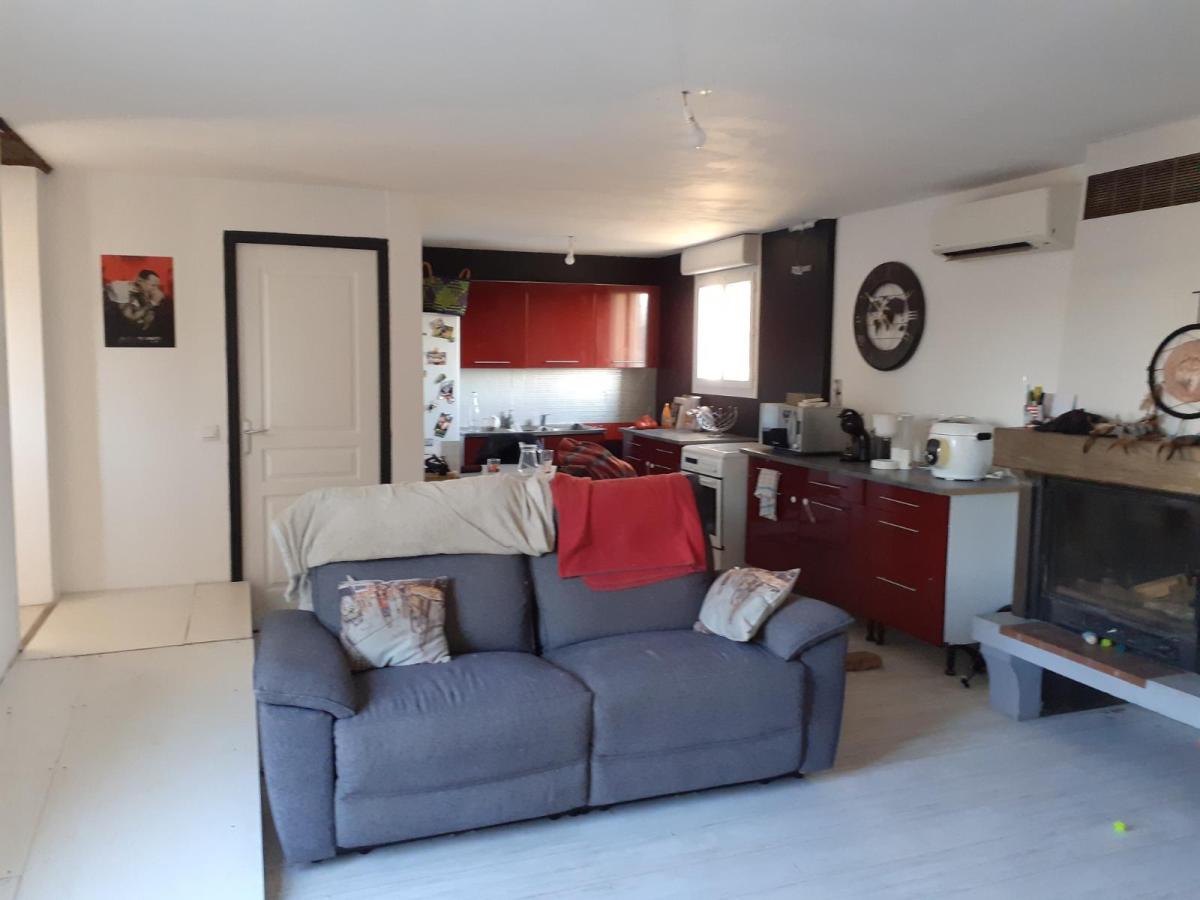 Maison F5 d'environ 125 m², sise route de Beuvron à JANVILLE, comprenant au RDC séjour avec cuisine ouverte, salon, buanderie, dégagement, salle d'eau, wc et à l'étage, dégagement, grande mezzanine et 2 chambres.