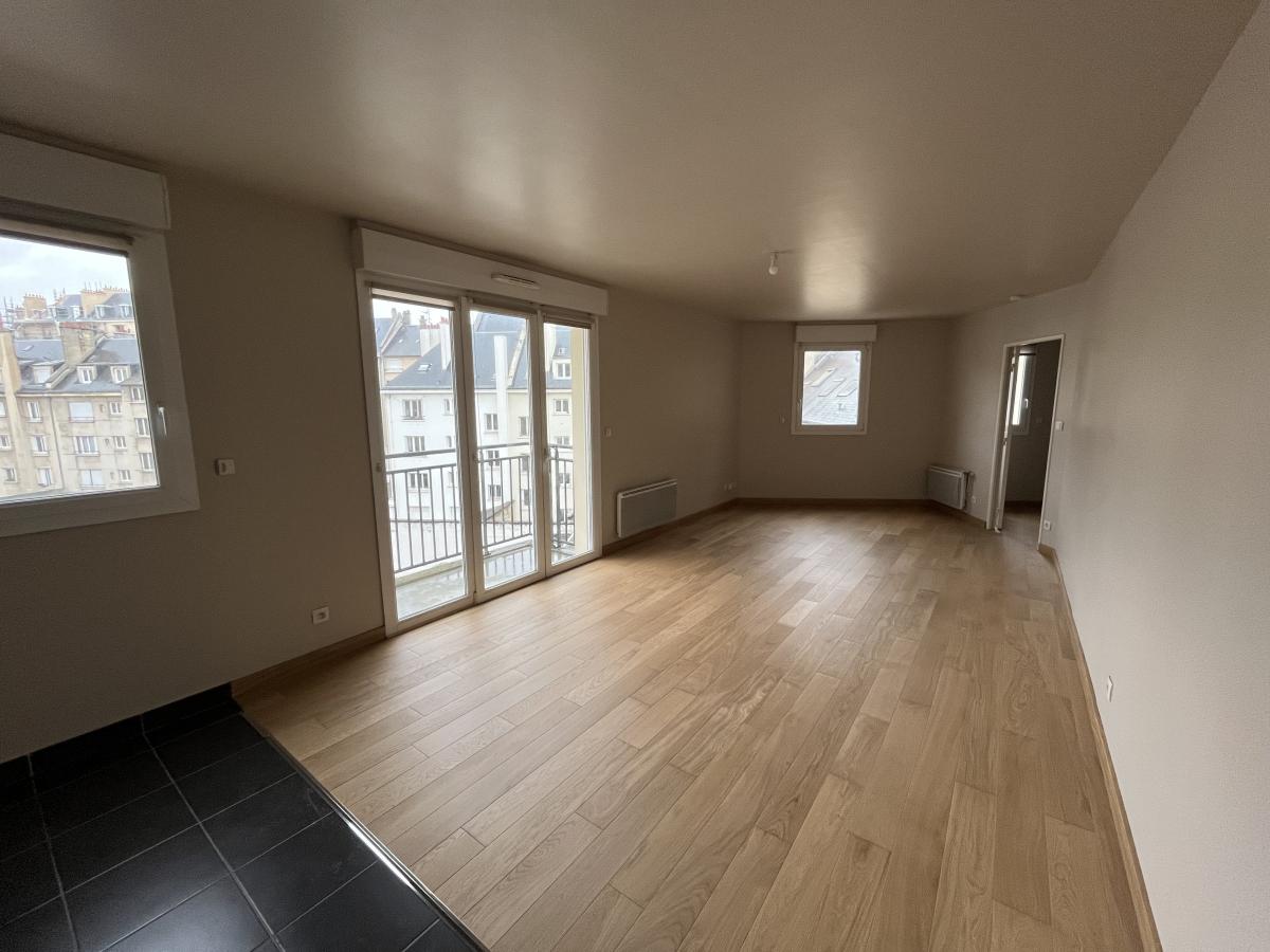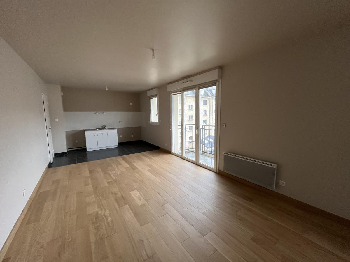 Appartement de type F2, sis 20 rue Paul Toutain à CAEN, proche hippodrome, comprenant entrée avec placard, séjour avec cuisine ouverte et balcon, chambre et salle de bains.