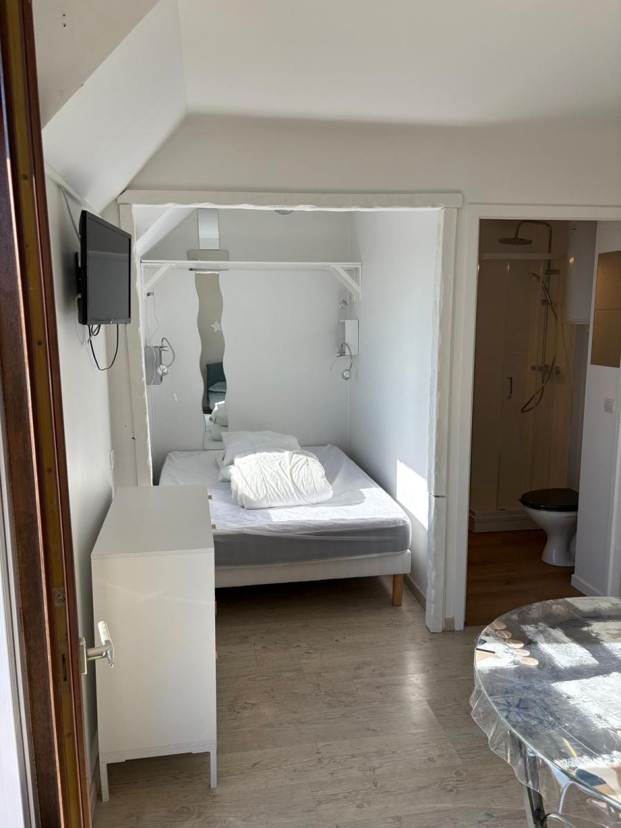Studio meublé sis Résidence La Seigneurie, rue Fontenelle à OUISTREHAM, comprenant pièce de vie avec coin-cuisine et coin chambre, salle d'eau avec wc.