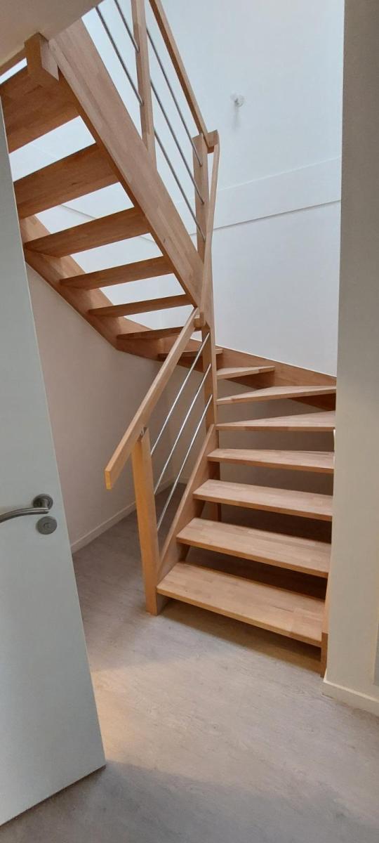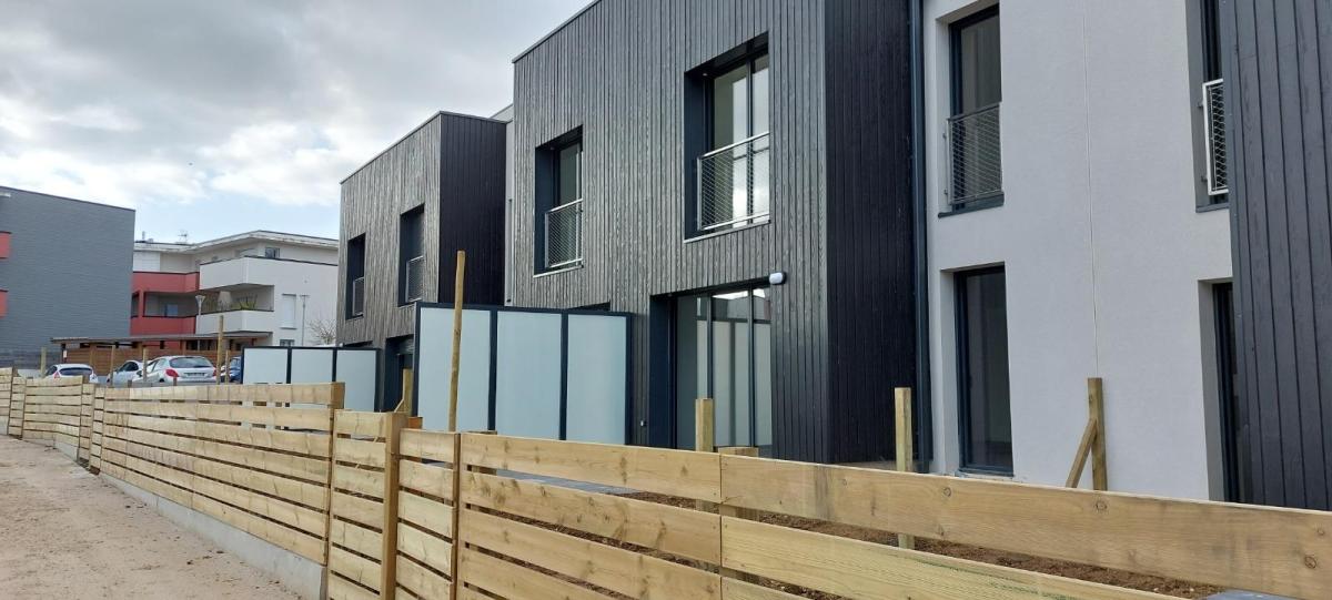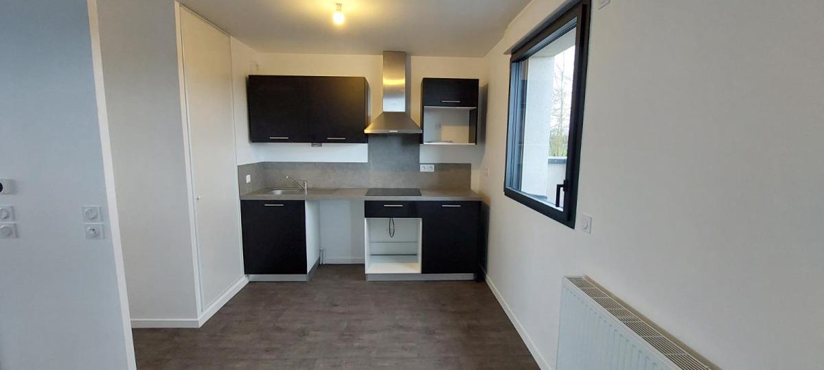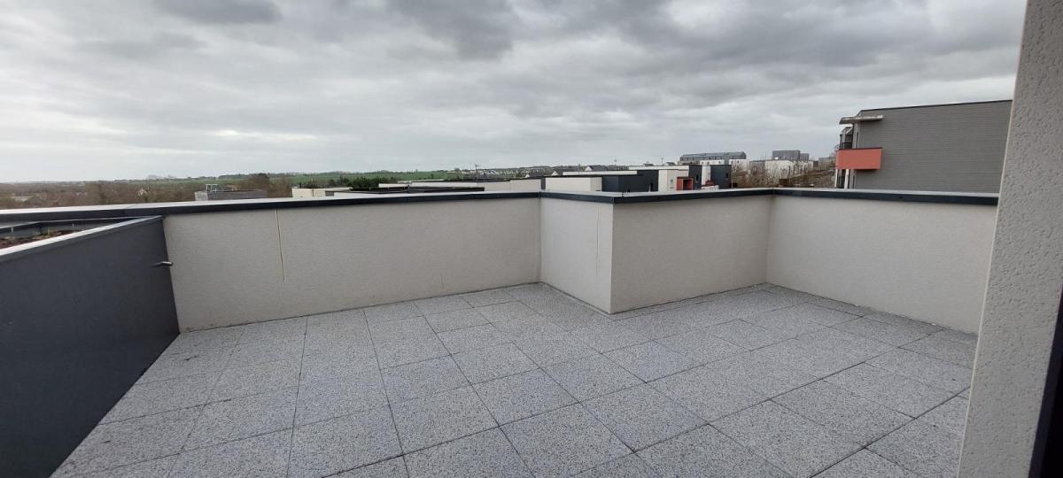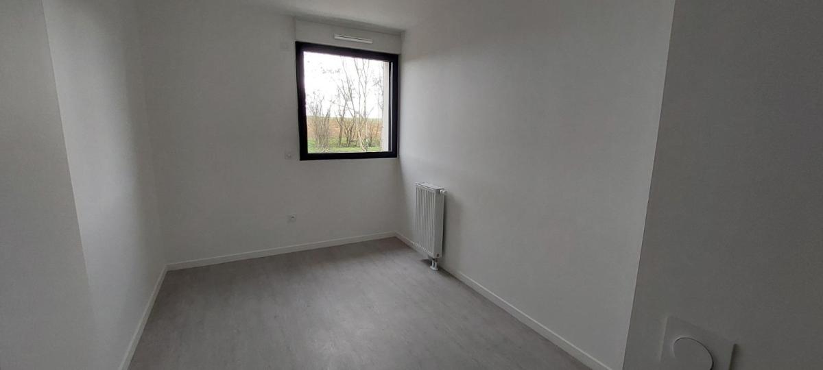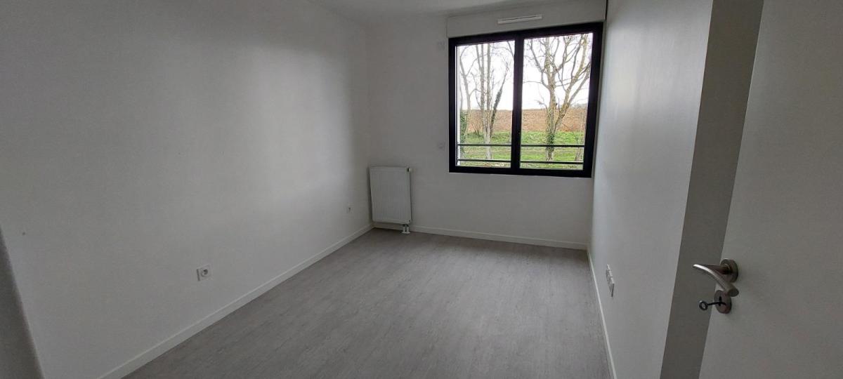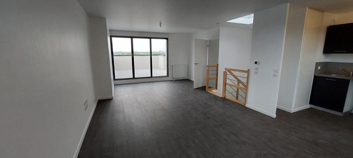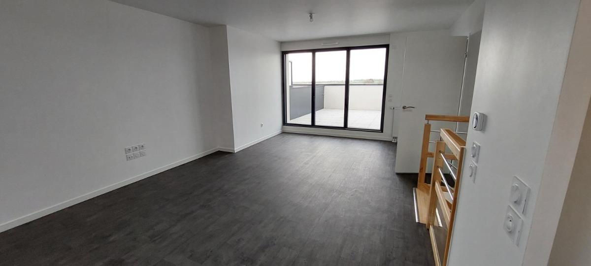 Libre de suite, F3 en duplex inversé avec terrasse, sis Zac de l'Ecoquartier à VERSON, comprenant entrée, wc, salle d'eau, deux chambres avec placard, à l'étage : séjour, cuisine aménagée, cellier et WC. Cave et emplacement de parking. Chauffage gaz.