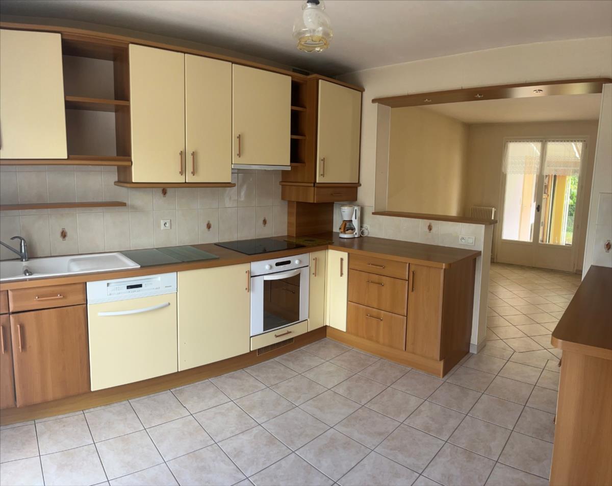 IFS Bourg , une maison comprenant au rez-de-chaussée : une entrée, une cuisine aménagée et équipée, un séjour-salon avec insert, une véranda et une chambre. A l'étage, trois chambres, une salle de bains, une pièce à usage de dressing ou bureau, un wc .Grenier au-dessus Garage avec une partie atelierUne terrasse donnant accès à un jardin clos et arboré, cabanon de jardin