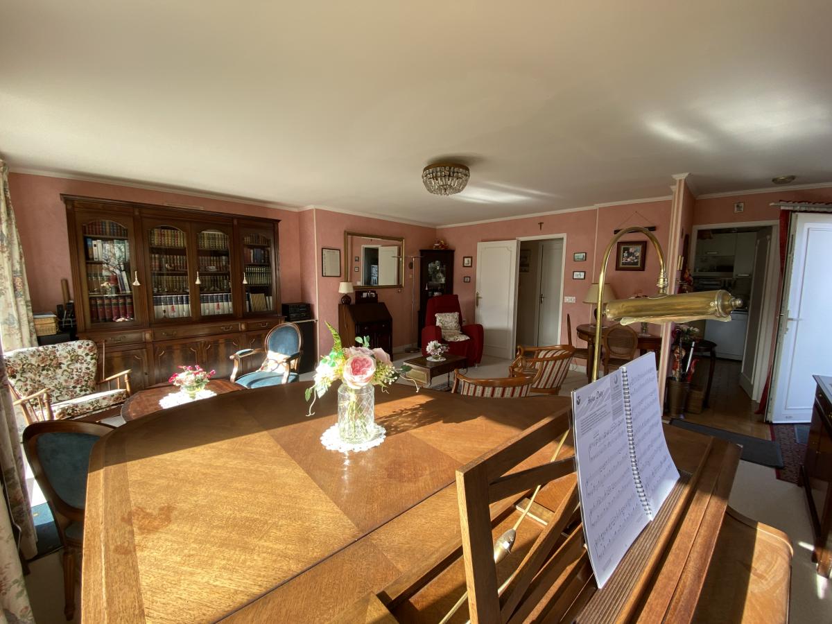 Pour une vie paisible et de plain-pied, agréable maison se composant d'un séjour salon lumineux avec de grandes baies vitrées permettant d'accéder à une terrasse exposée