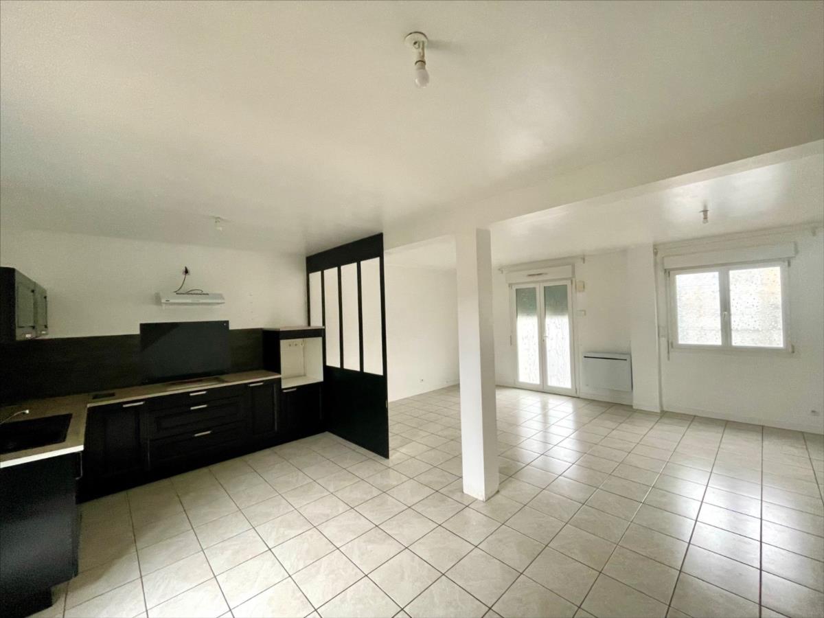 Maison de ville de 2007 d'une surface de 98 m2 et sur sous-sol complet, composée d'une cuisine aménagée ouverte sur un vaste salon-séjour. Au 1er étage : palier desservant 2 belles chambres, salle de bains-wc.