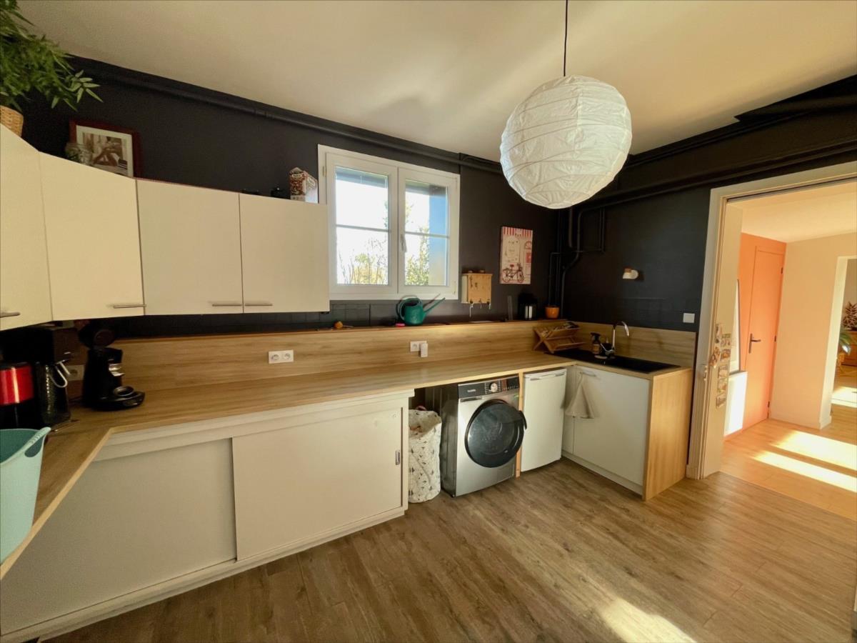 Uniquement à l'Etude, proche commerces et école, dans un environnent au calme, maison très lumineuse entièrement rénovée avec une extension de 2023 et comprenant une entrée, cuisine aménagée, arrière-cuisine avec placards, salon-séjour avec poêle à bois et orienté sud, une grande chambre avec poêle à bois (actuellement salle de jeux), un wc. Possibilité de créer une salle de bains au rez-de-chaussée. A l'étage : palier desservant trois chambres, placards, salle d'eau.