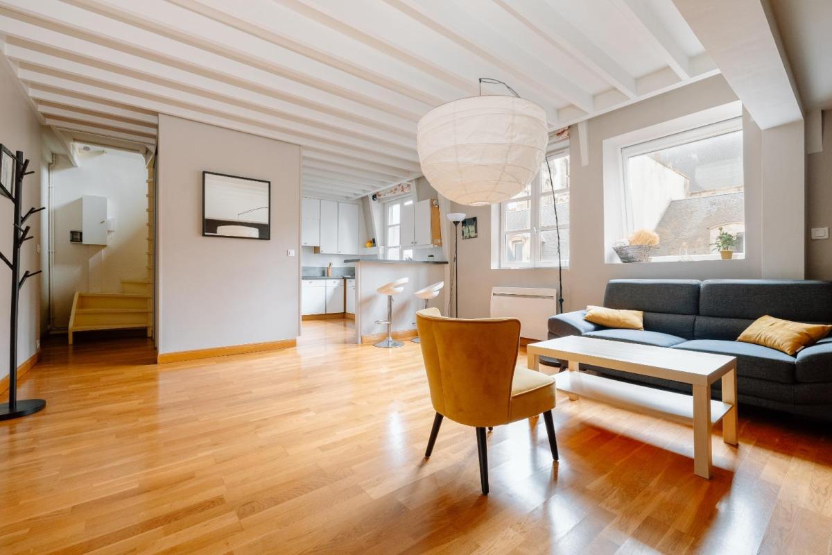 Hyper centre ville de Caen, dans une copropriété du XIXème siècle avec ascenseur, un appartement de standing en triplex comprenant une entrée avec placard, cuisine aménagée récente, séjour-salon orienté sud. A l'étage : pièce palière avec placards, deux chambres, salle de bains, wc. Au dernier étage : petit palier desservant deux chambres mansardées avec vue sur les toits et clochers de Caen, une salle d'eau avec wc. Chauffage individuel électrique avec radiateur caloporteur. Une cave en sous-sol complète ce bien. Charges annuelles de copropriété : 1600 € Les informations sur les risques auxquels ce bien est exposé sont disponibles sur le site Géorisques : www.georisques.gouv.fr. 415.000 € honoraires de négociation inclus. Coordonnées négociateur : Jean Christophe PEAN, Mobile : 06 42 48 53 14, Email : negociation.14013@notaires.fr