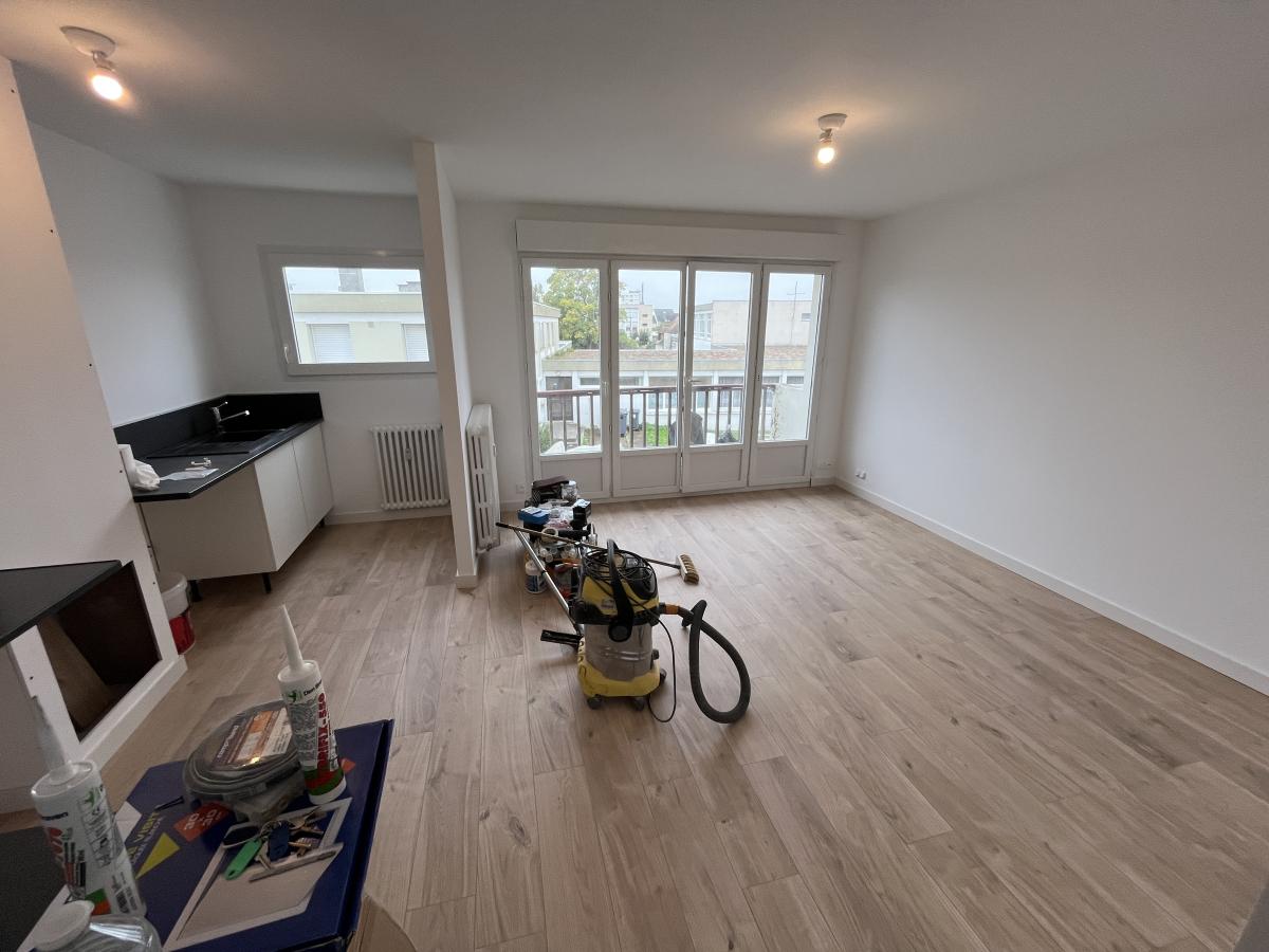 ✨ Entrée, séjour lumineux avec loggia, cuisine indépendante, chambre, salle d’eau, WC séparés. En cours de rénovation.