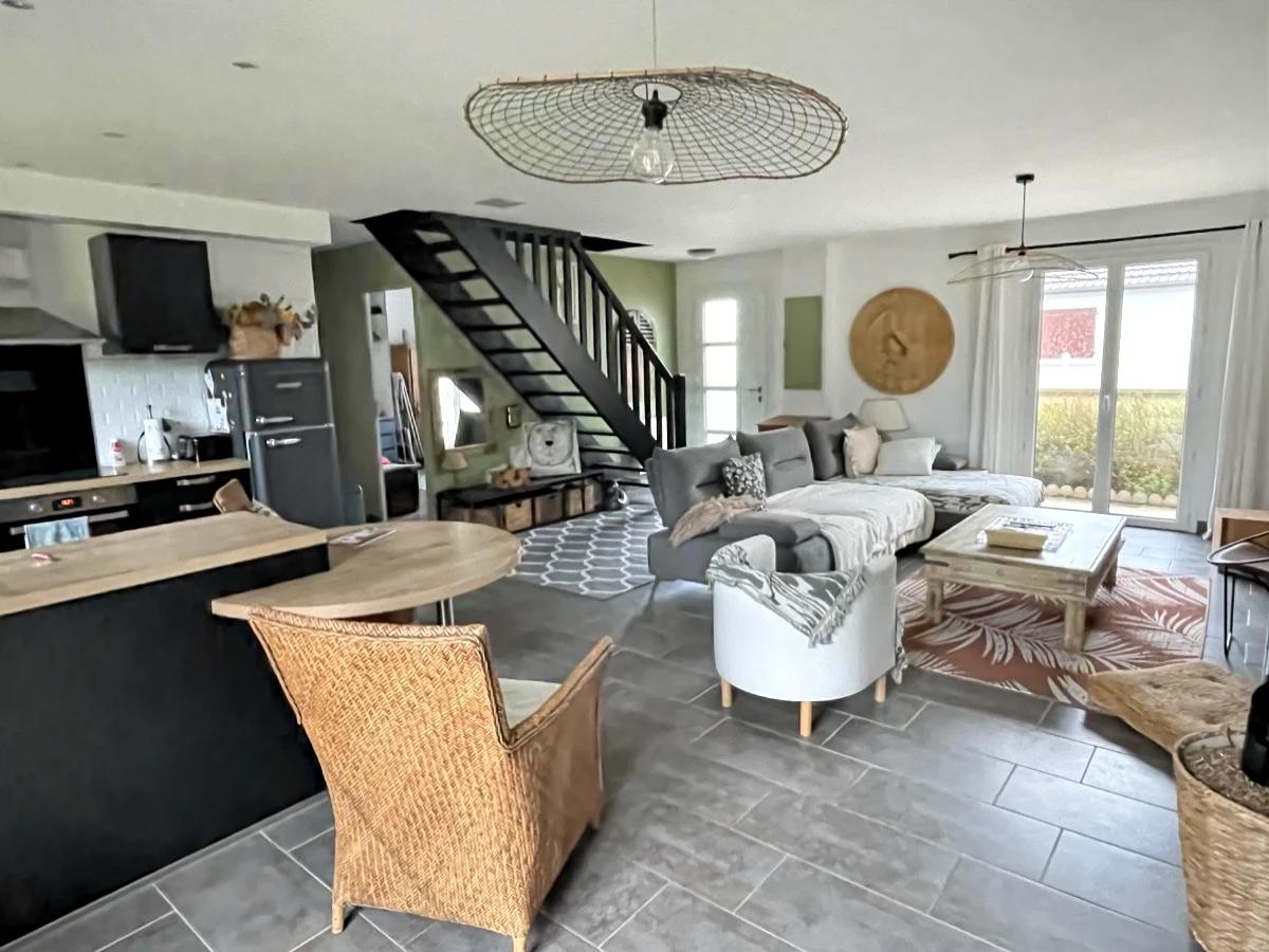 Garage, terrasse en bois et jardin clos d'environ 445 m² complètent ce bien, idéal en résidence principale ou secondaire, à deux pas de la mer !
