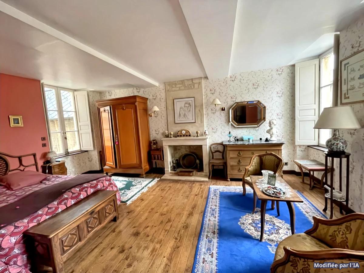 Au 1er étage, l’appartement dispose d’une salle d’eau avec WC, et d’un bel espace chambre/boudoir traversant, plein de charme, avec cheminée décorative.