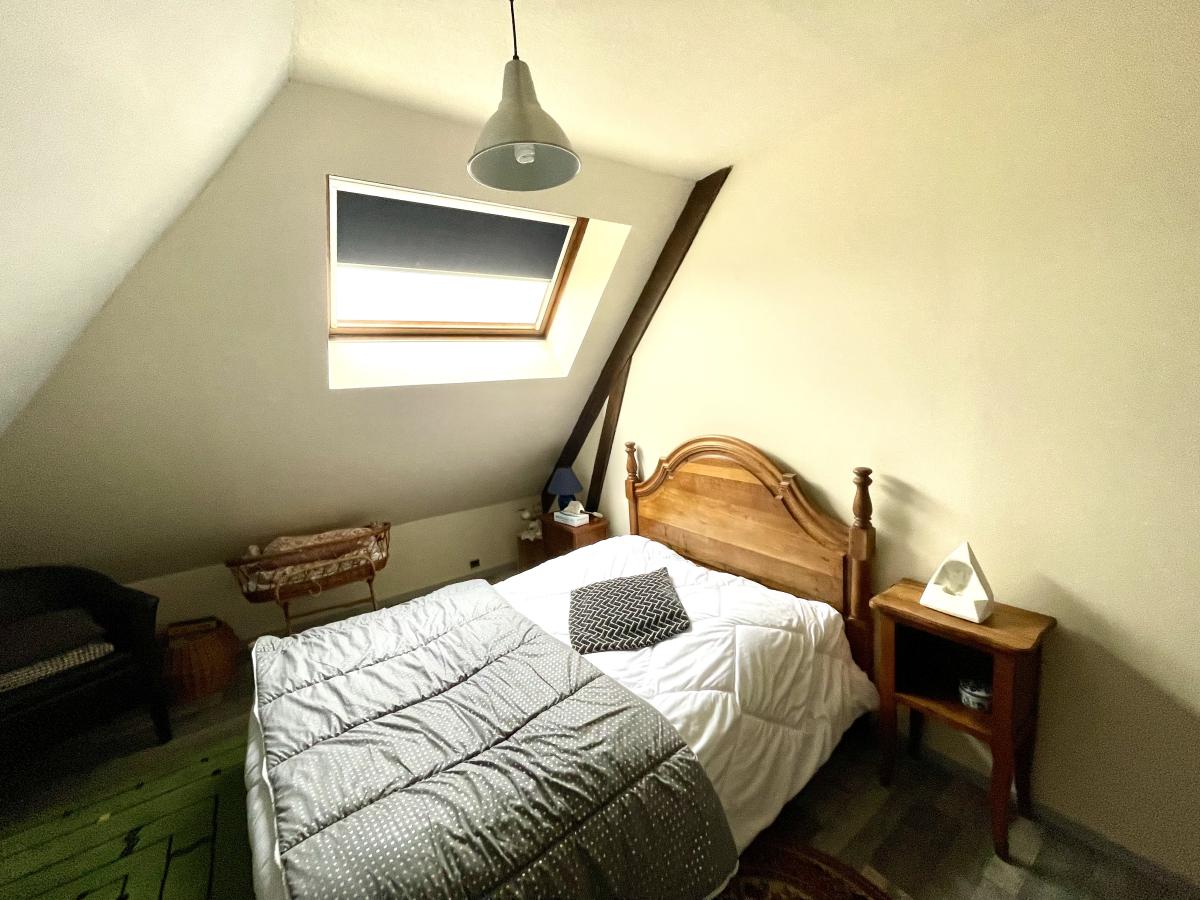 - Au RDC : entrée, salle à manger, salon avec cheminée insert, véranda, cuisine A/E, WC, 2 chambres, salle d’eau moderne avec douche à l’italienne.