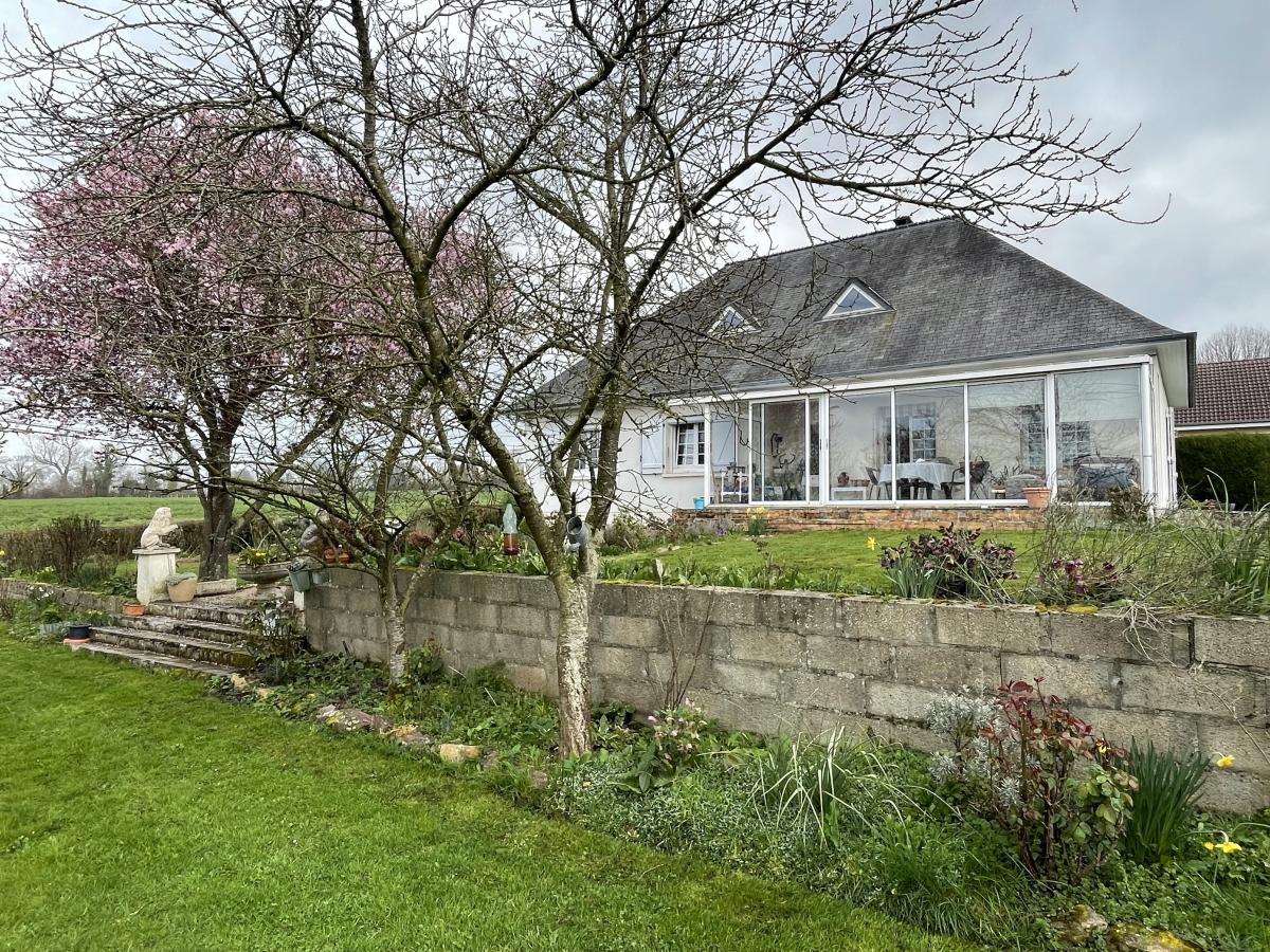 Les + : vie de plain-pied, 5 chambres, sous-sol complet, environnement calme à proximité de Bayeux.