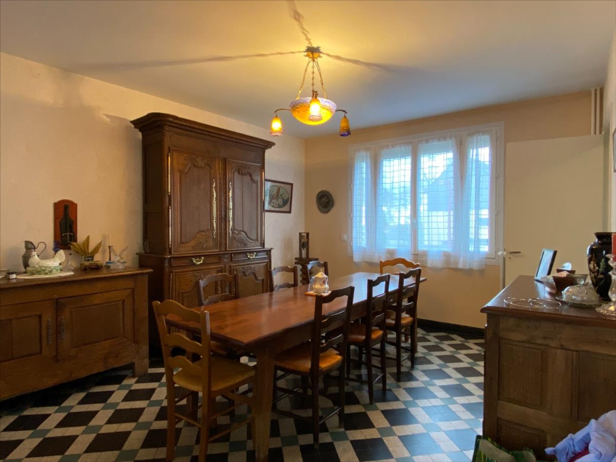 couloir, deux chambres, dressing, salle d'eau avec WC, grenier. Garage accolé avec au-dessus. Abri de jardin. Cour, potager. Etude de Maîtres Guillaume DAON et Christelle CAUCHOIS, Notaires associés. Contacter Monsieur Jérôme Perret au 02.31.75.89.19 ou au 07.71.01.30.17. Honoraires charge vendeur. Les informations sur les risques auxquels ce bien est exposé sont disponibles sur le site Géorisques : www. georisques. gouv. fr