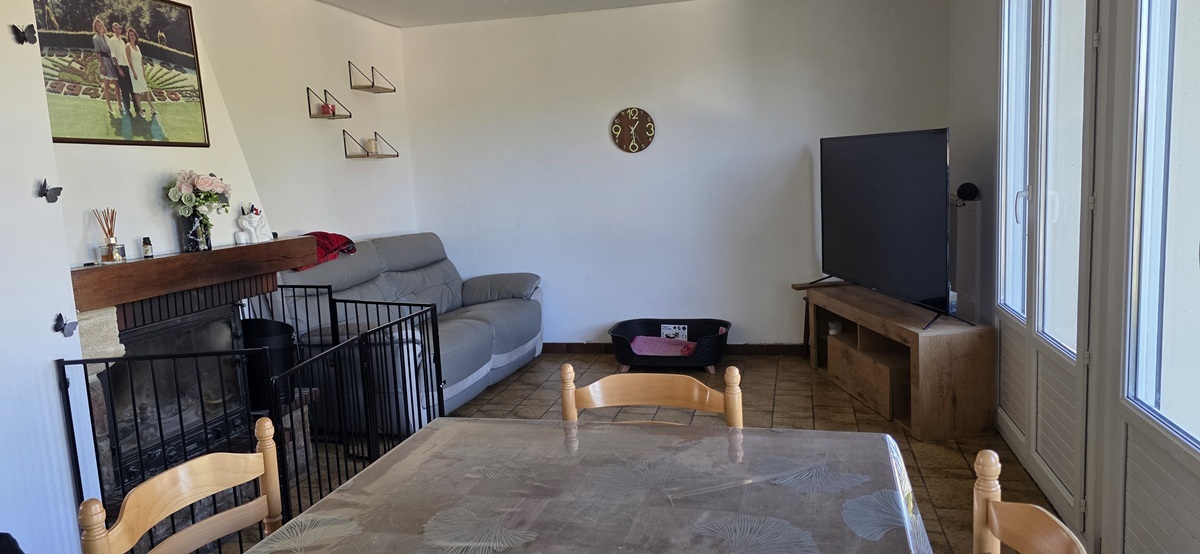- au rez-de-chaussée : entrée , séjour salon avec cheminée, cuisine aménagée,  trois chambres, salle d'eau, wc,