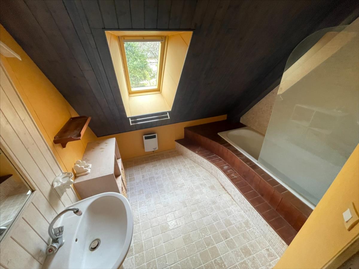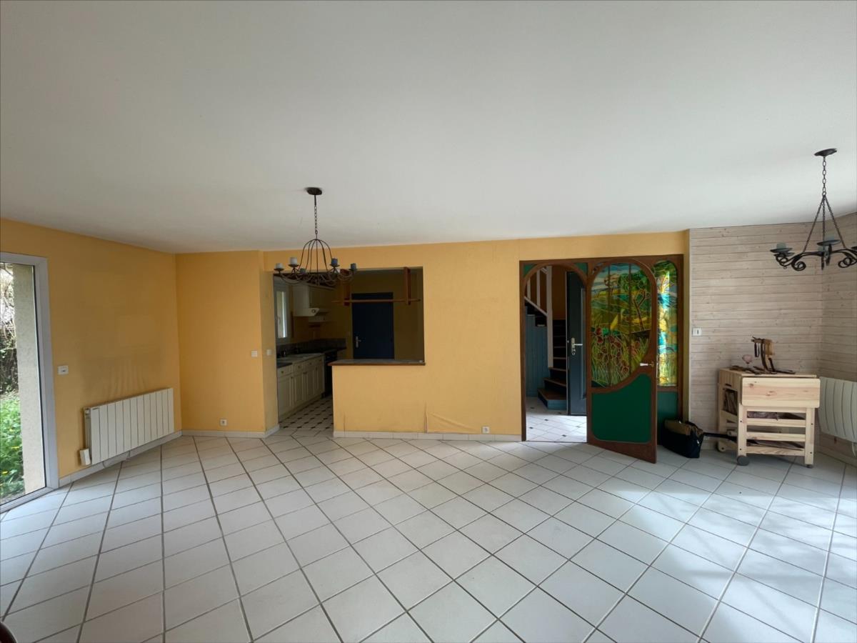 Une maison individuelle de 1996, d'une surface de 91m², composée :entrée, wc, pièce de vie ouverte sur la cuisine, accès véranda.A l 'étage à raffraichire: 2 chambres, salle de bain. Grenier aménageable possible 3ème chambre.Jardin arboré 437m². garage + buanderie (possible chambre et salle d'eau au rez de chaussée .